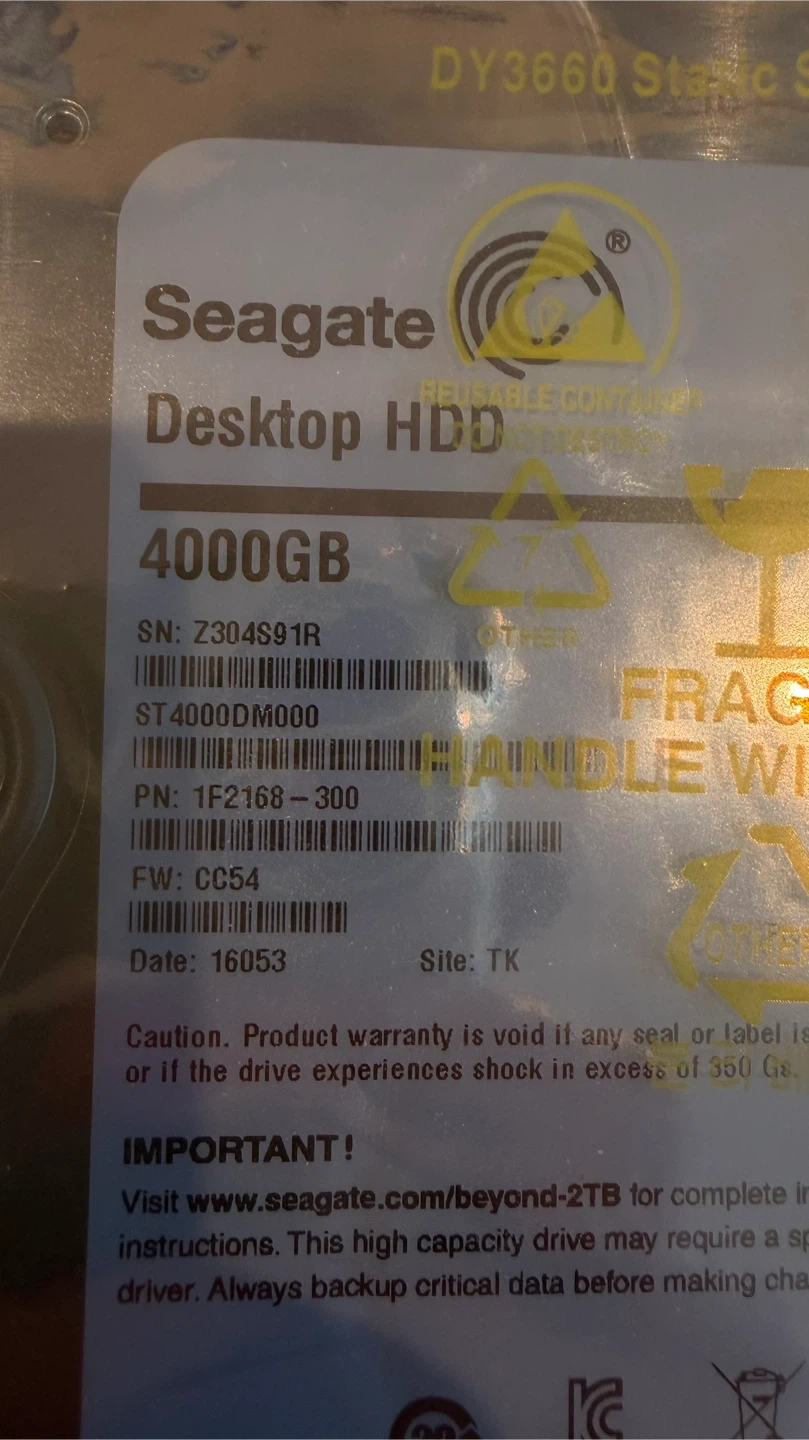 Seagate 4TB Desktop HDD internal hard drive Model ST4000DM000. Manufactured in 2015.
