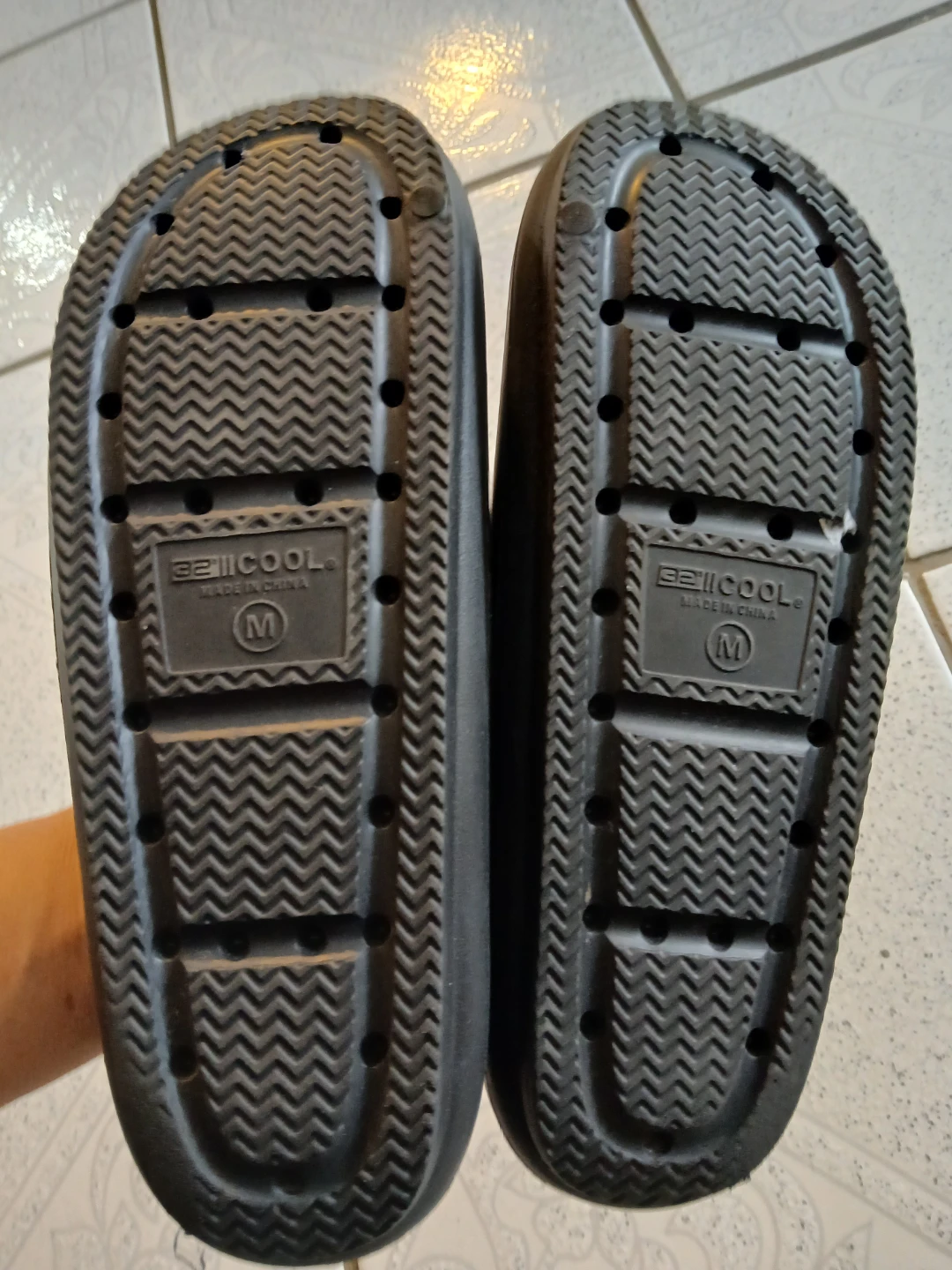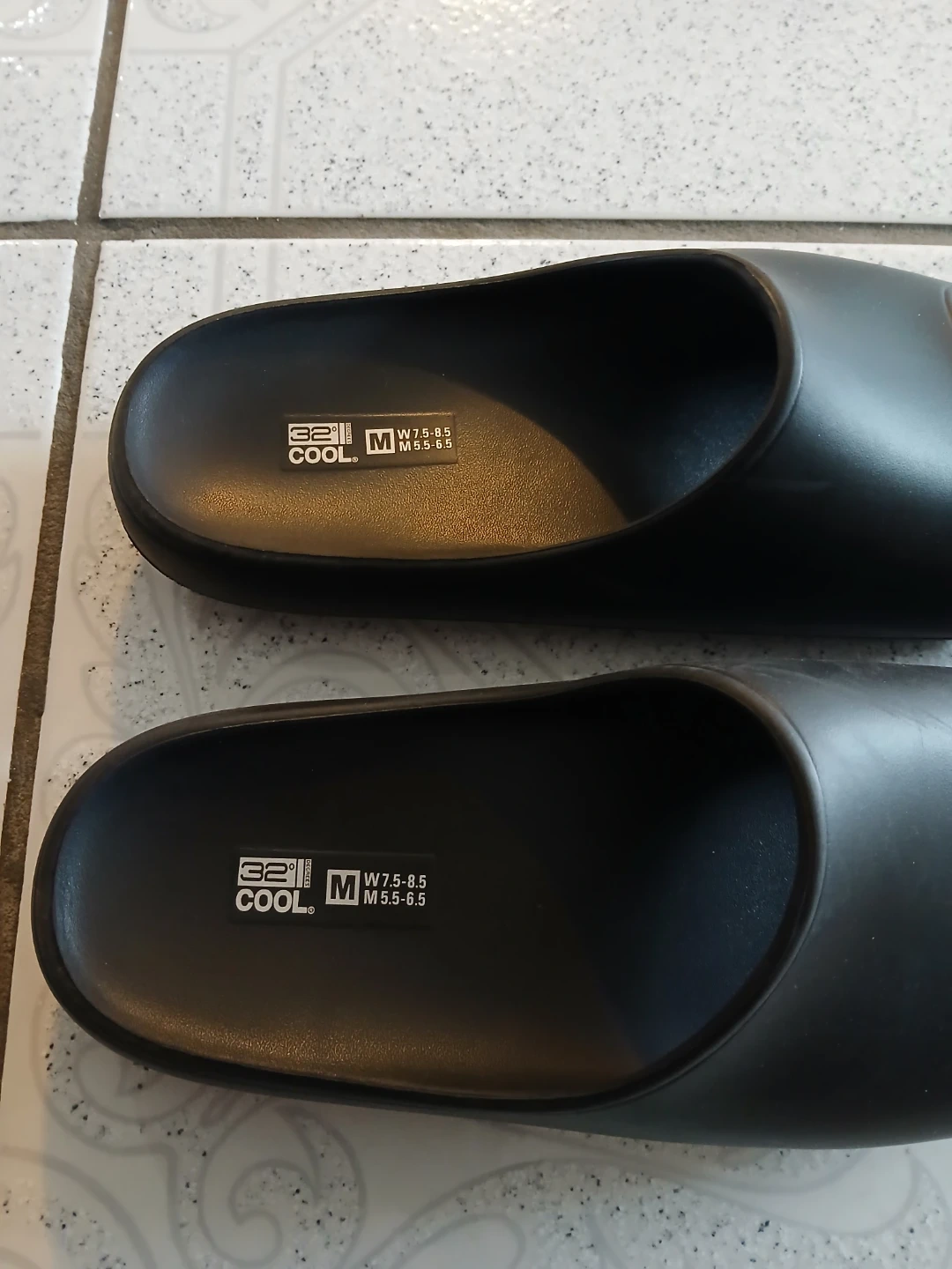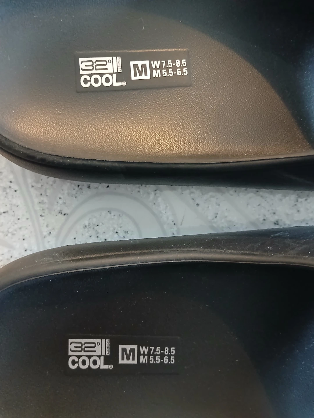 These 32 Degrees COOL slide sandals are black. They are a size medium, fitting women's 7.5-8.5 and men's 5.5-6.5. They feature a comfortable EVA material construction. Easy to slip on for casual wear!