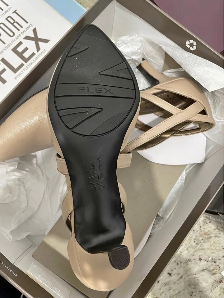 LifeStride Nude Strappy Pointed Toe Heels Flex Soft System