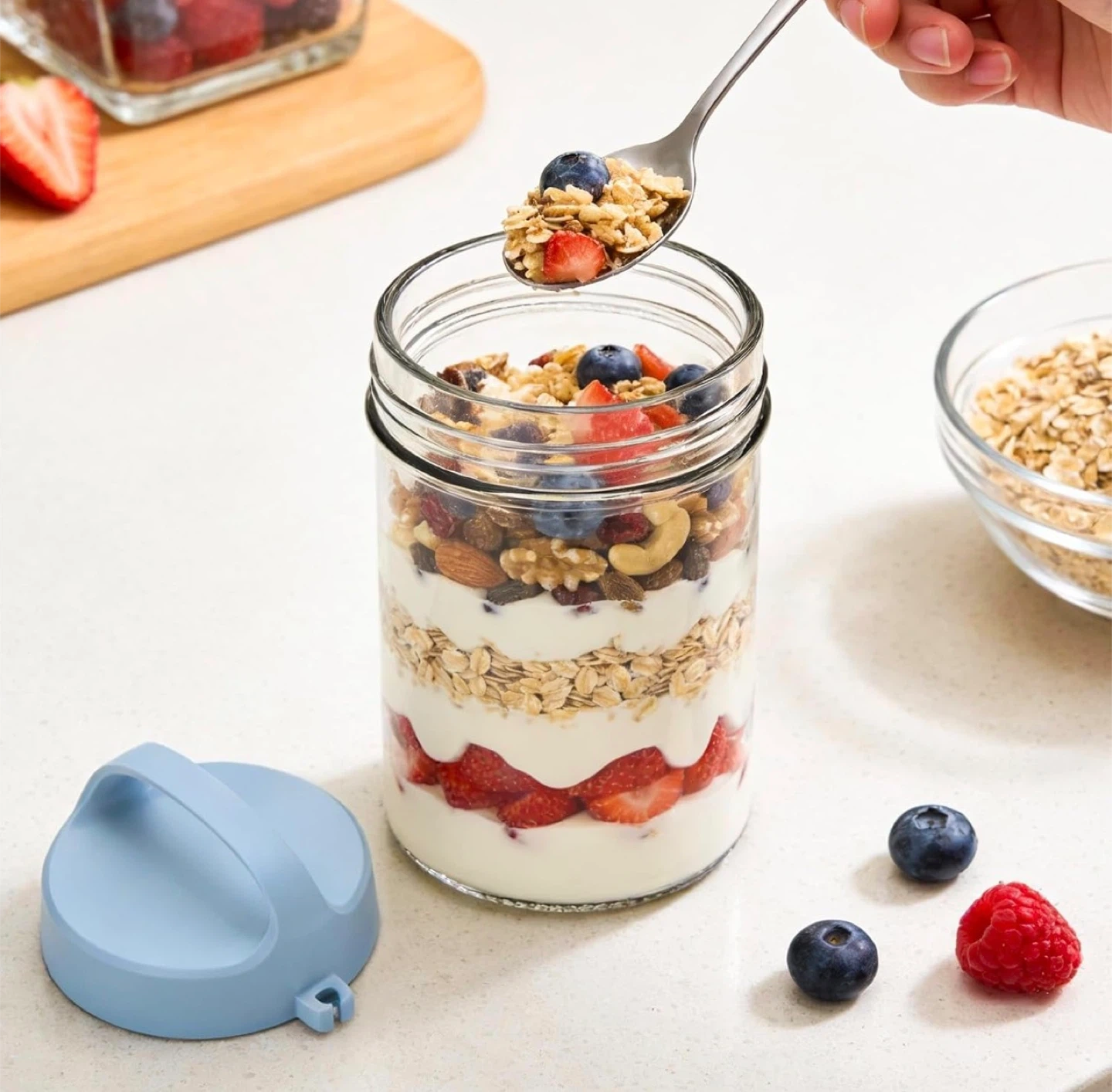 Glass Yogurt Parfait Jar with Lid and Spoon