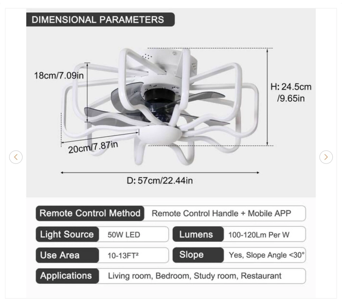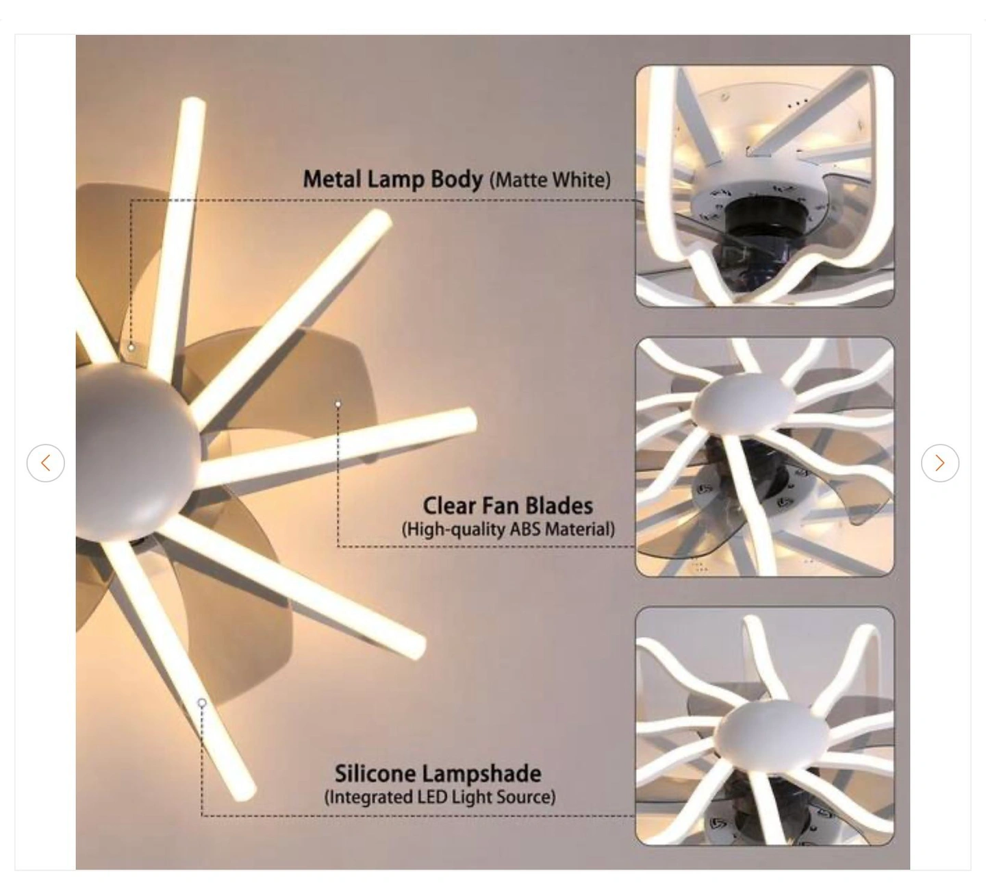 22.83 in. Indoor White Modern Silicone Lampshade LED Ceiling Fan