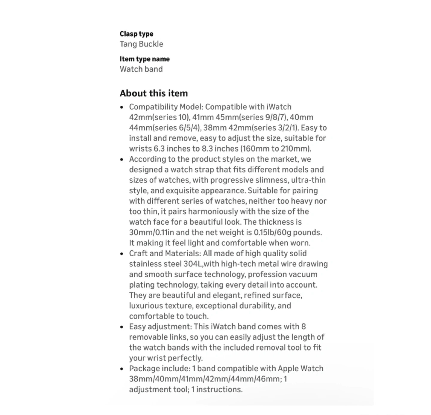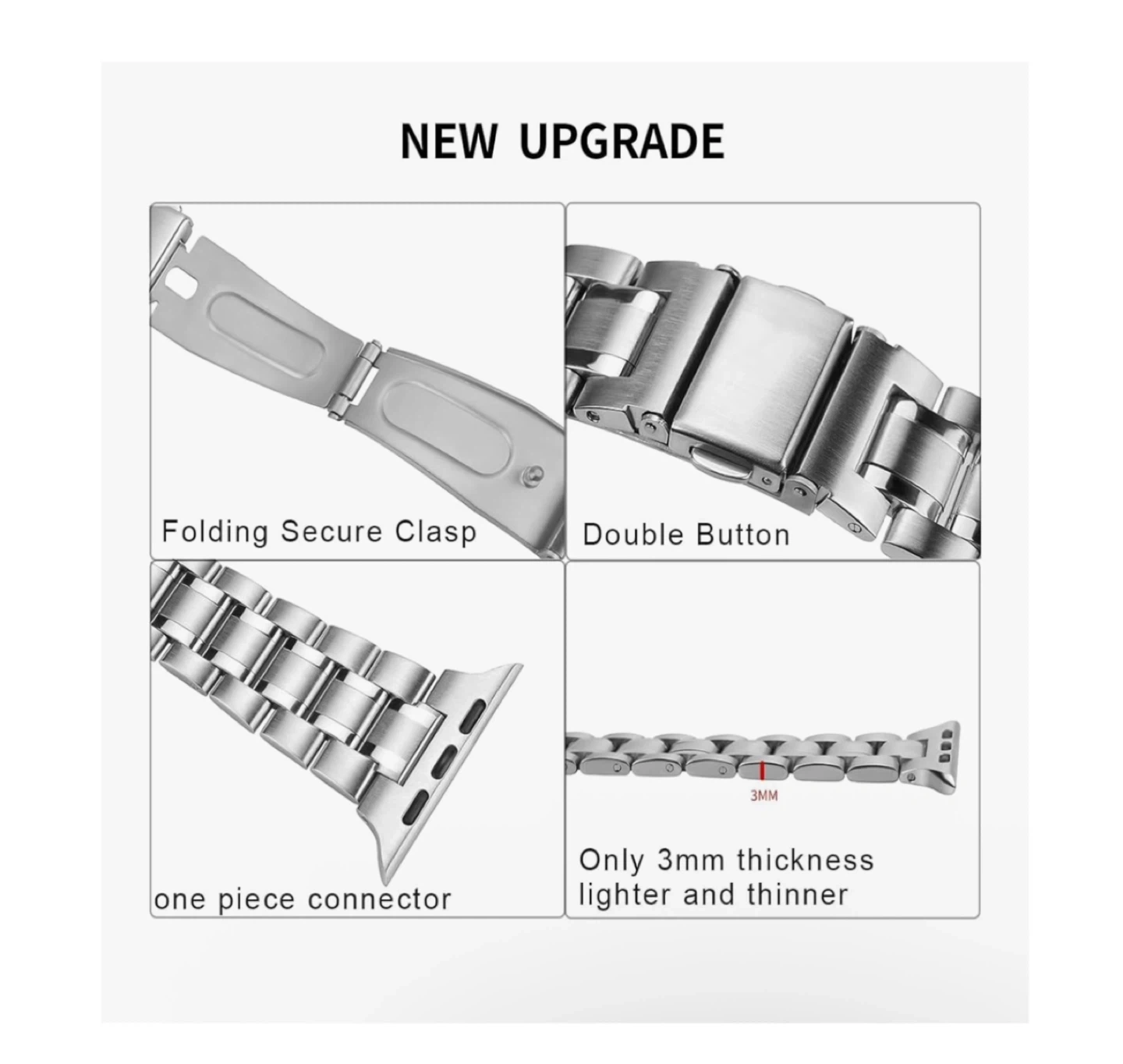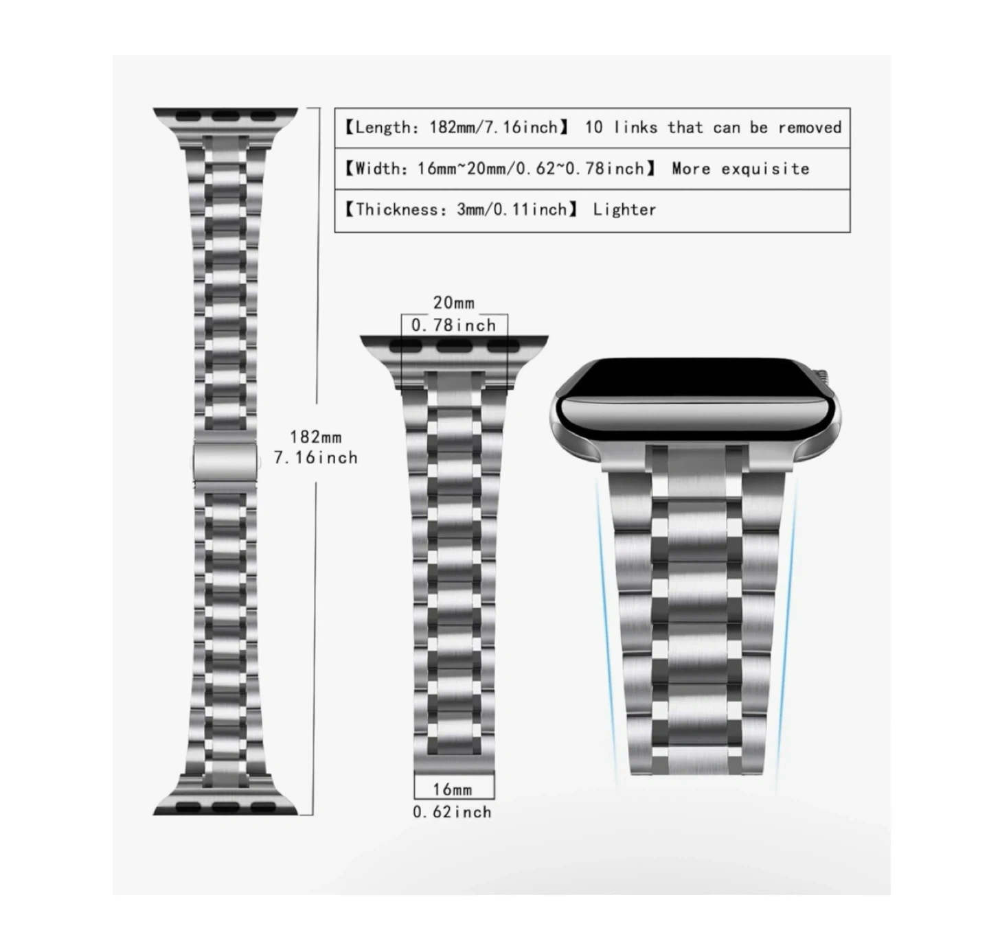 Brand new Stainless Steel Band Compatible with Apple Watch 42mm(Series10) 38mm 40mm 41mm, Metal Strap for iWatch Bands for Women Silver