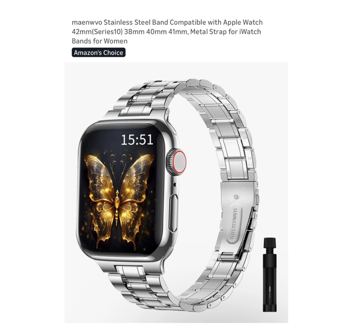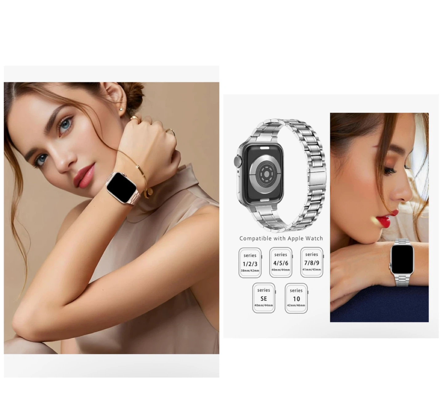 Brand new Stainless Steel Band Compatible with Apple Watch 42mm(Series10) 38mm 40mm 41mm, Metal Strap for iWatch Bands for Women Silver