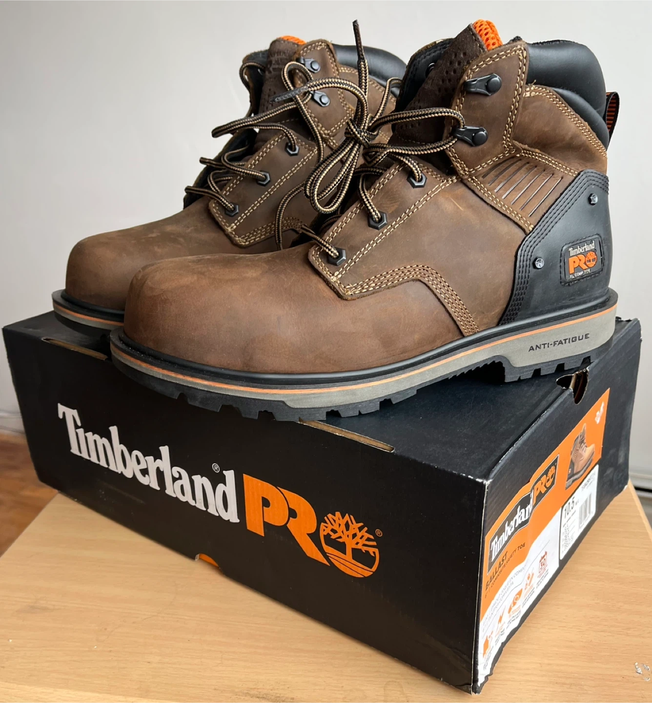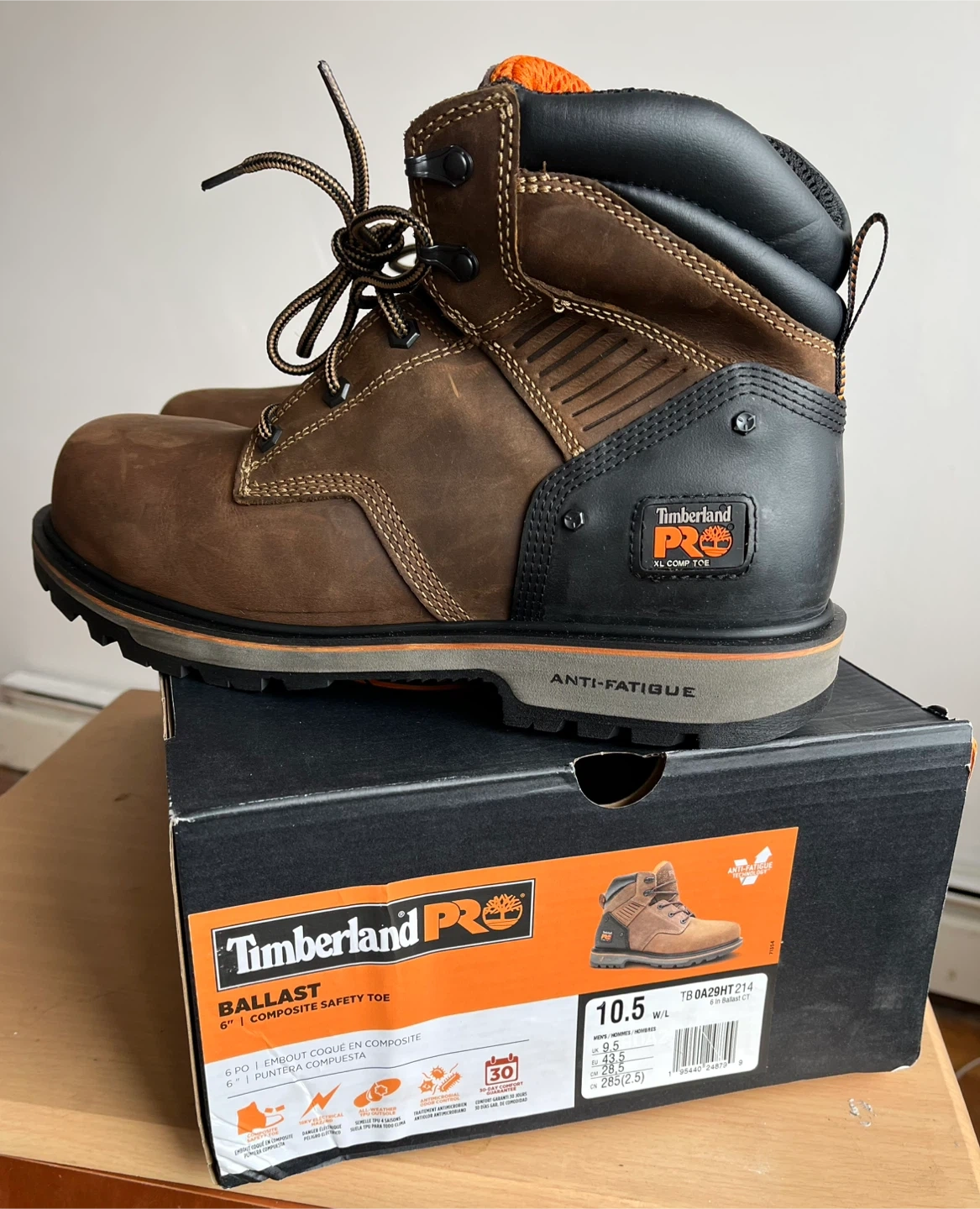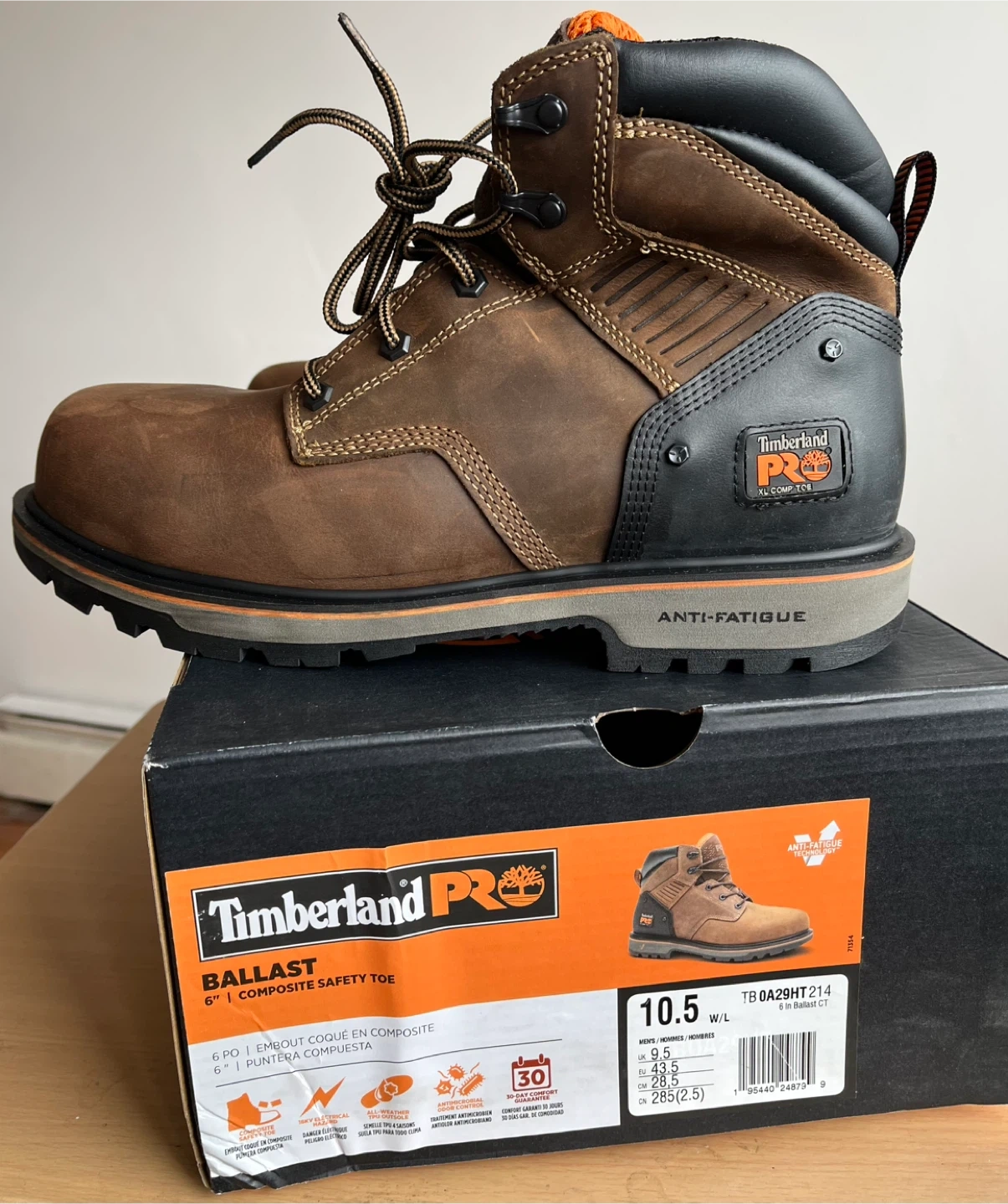 These Timberland Pro boots feature a 6" composite safety toe. They're designed for anti-fatigue comfort. Built with durable leather and a sturdy sole. Ideal for demanding work environments!