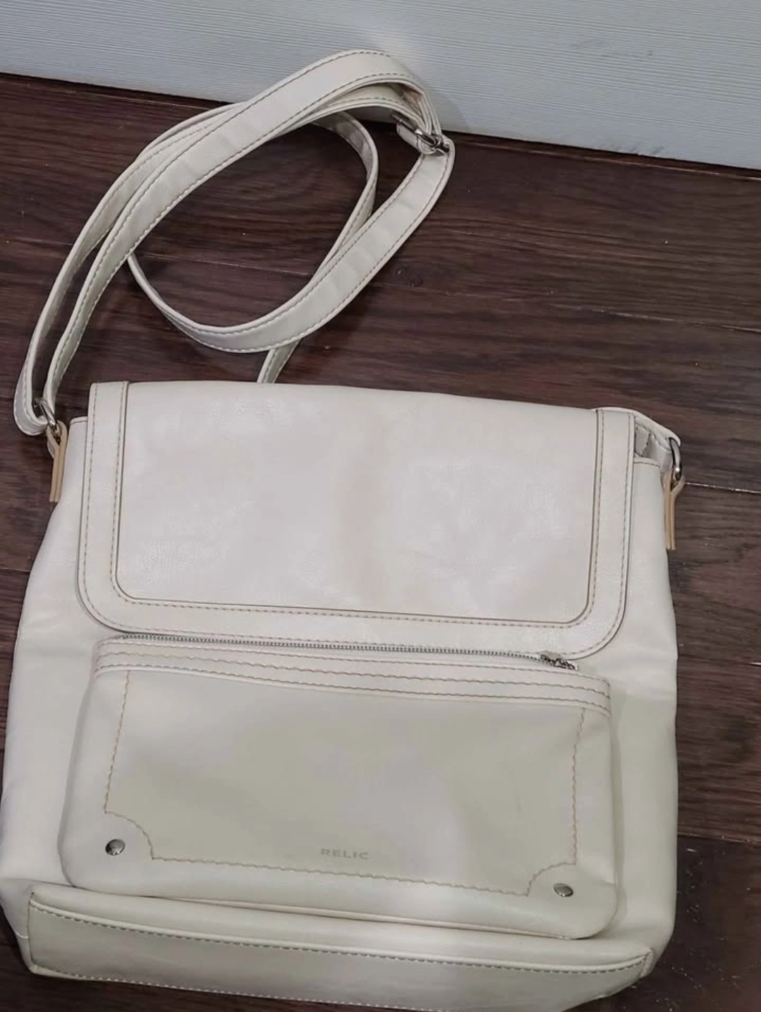 This is a Relic shoulder bag in an off-white color. It's a stylish and practical bag for everyday use. It features a convenient shoulder strap and multiple compartments to keep your belongings organized.