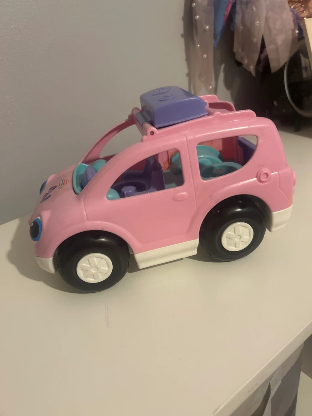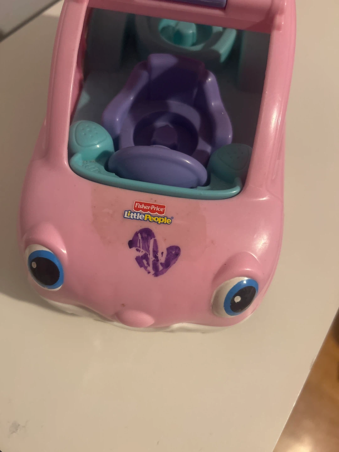 Selling a cute Fisher-Price Little People pink car! It has a purple interior and black wheels. This toy car is perfect for little hands and imaginative play. Great for toddlers!