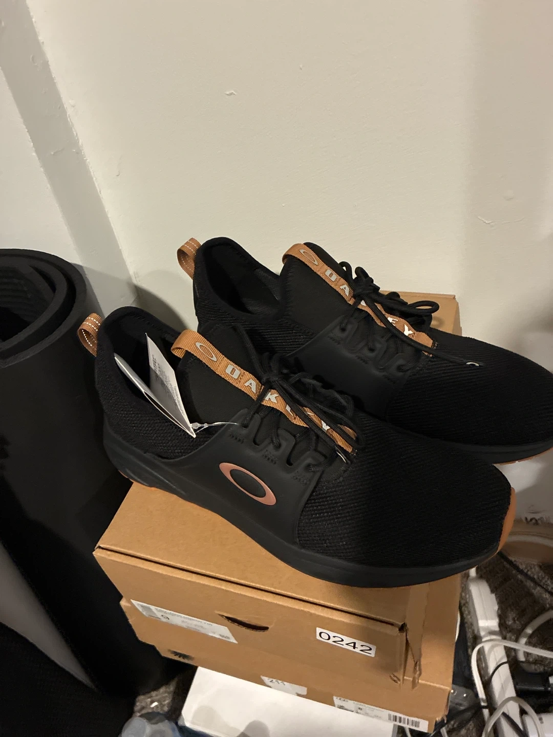 60Selling a pair of Oakley DRT 02 Breakout shoes in US size 11.5! They are black with a copper/tan accent color. They're in great condition and come with the original box