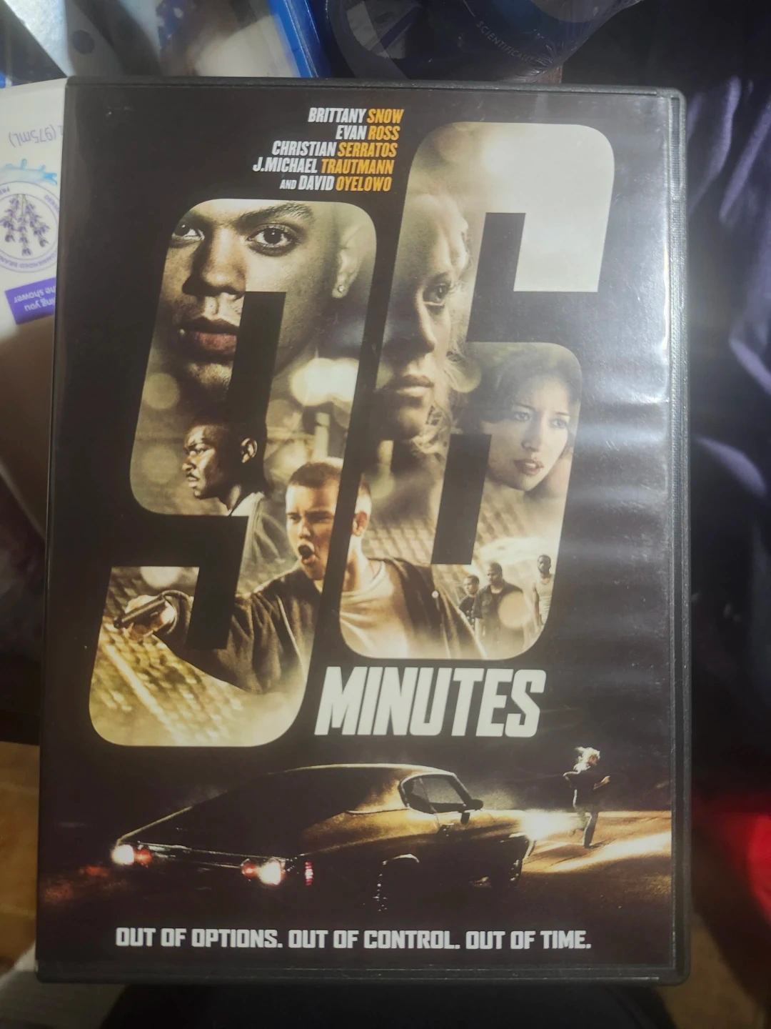 This is the 96 Minutes DVD featuring Brittany Snow, Evan Ross, Christian Serratos, J. Michael Trautmann, and David Oyelowo. It's a thriller movie with the tagline "Out of options. Out of control. Out of time."