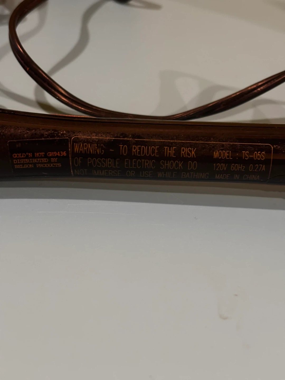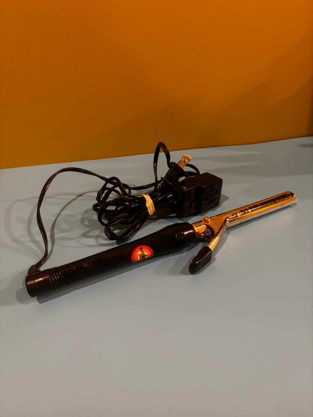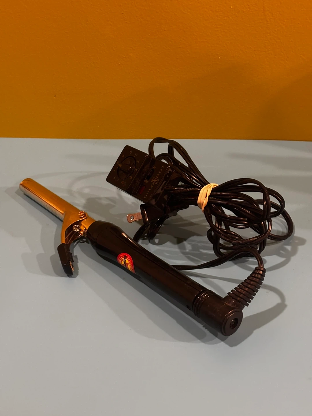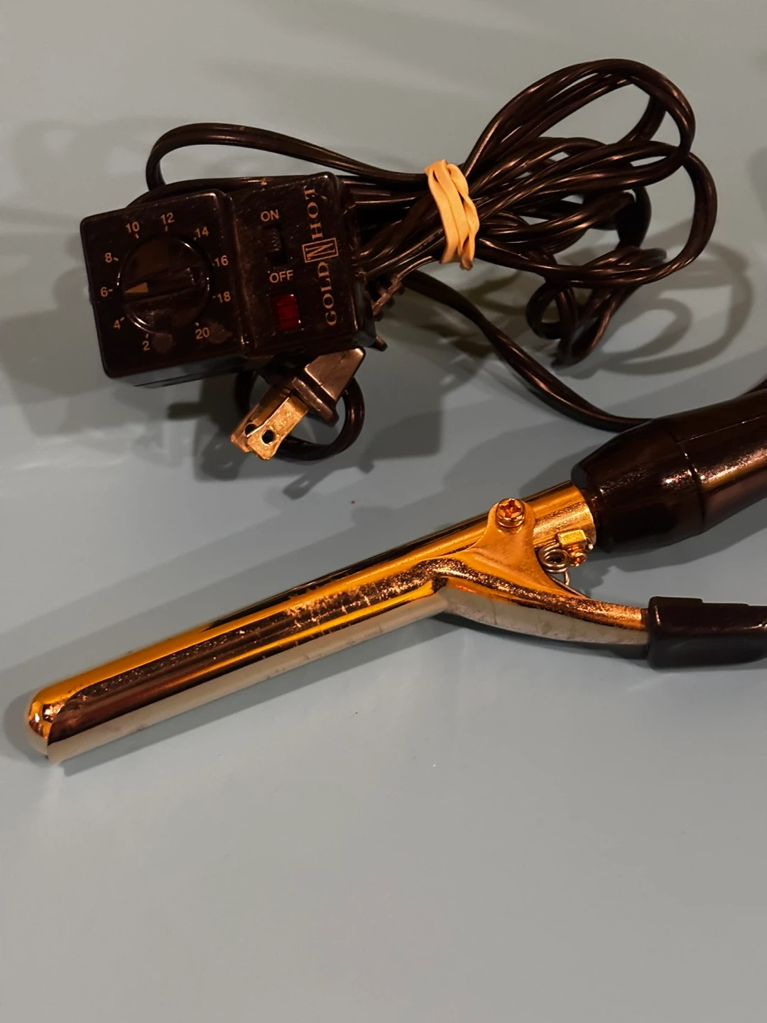 This is a Gold N Hot TS-05S curling iron. It operates on 120V, 60Hz, and 0.27A. Made in China. This tool helps create curls and waves.