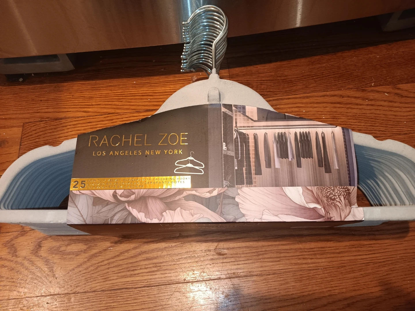 Rachel Zoe velvet hangers in a set of 25. They're designed with cascading hooks for additional hanging space. These hangers have a non-slip surface to keep clothes in place.