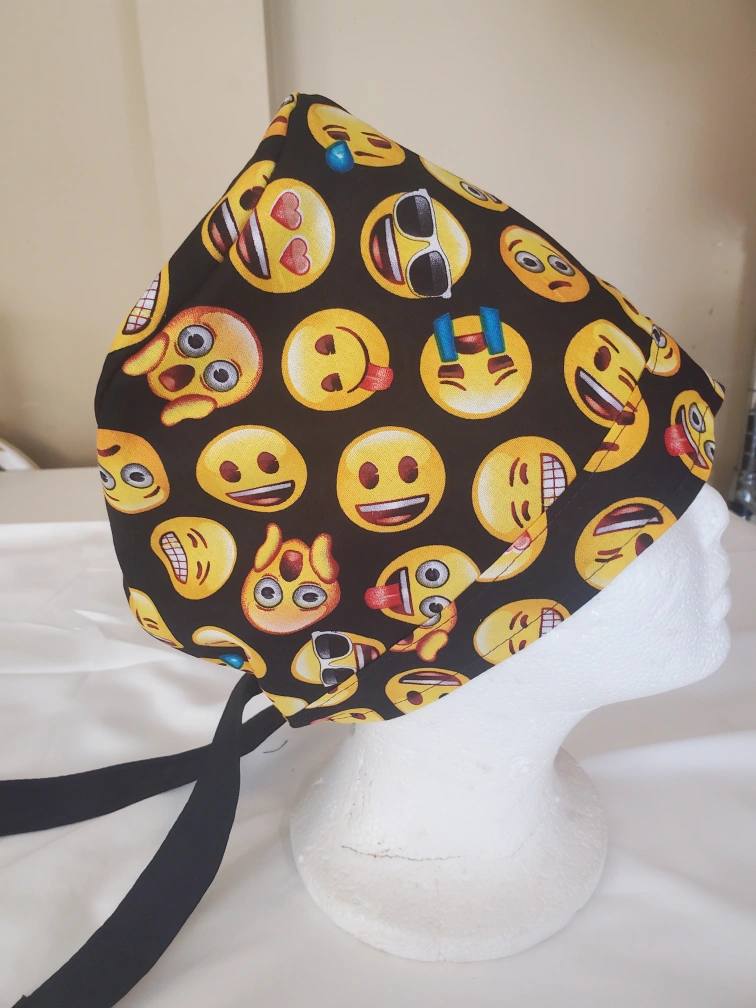 Emoji Print Scrub Cap Adult Sz Cotton Hand Crafted