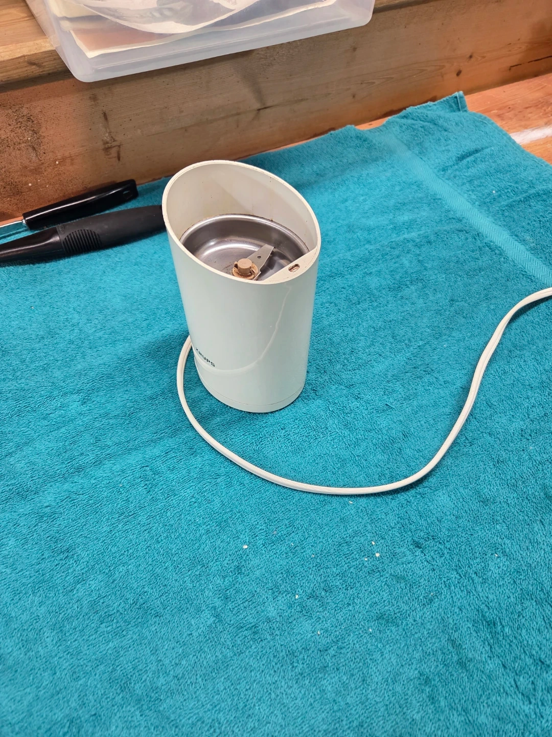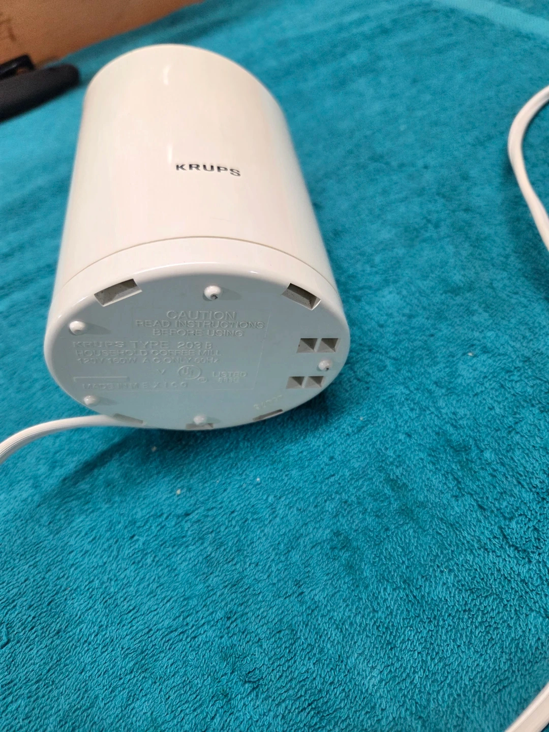 Selling a Krups coffee grinder, model 203.B. It's in good condition and ready to grind your favorite beans. Please read instructions before use.