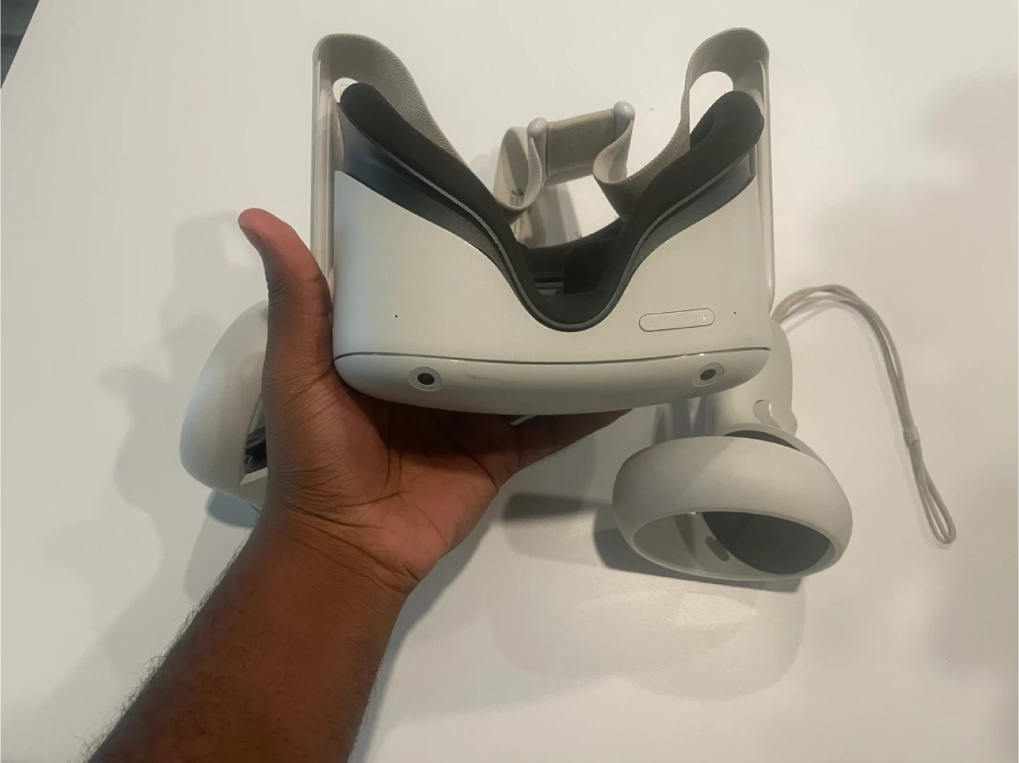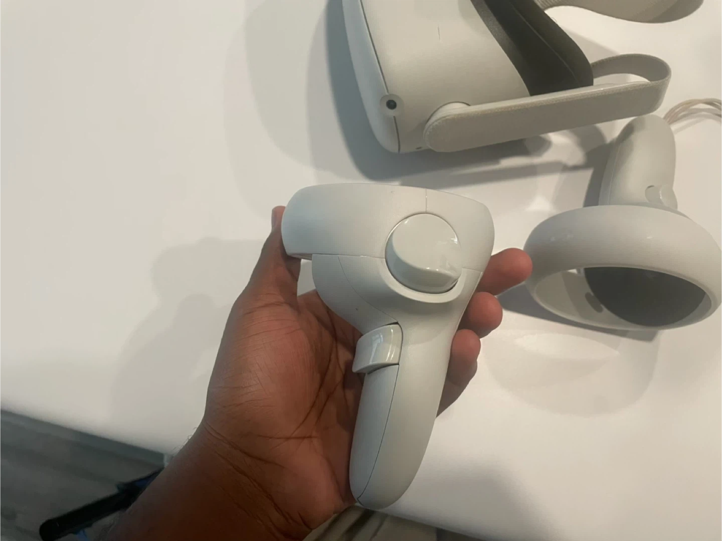 99Selling an Oculus Quest 2 VR headset. It comes with the controllers as pictured. Great for gaming and virtual experiences!
