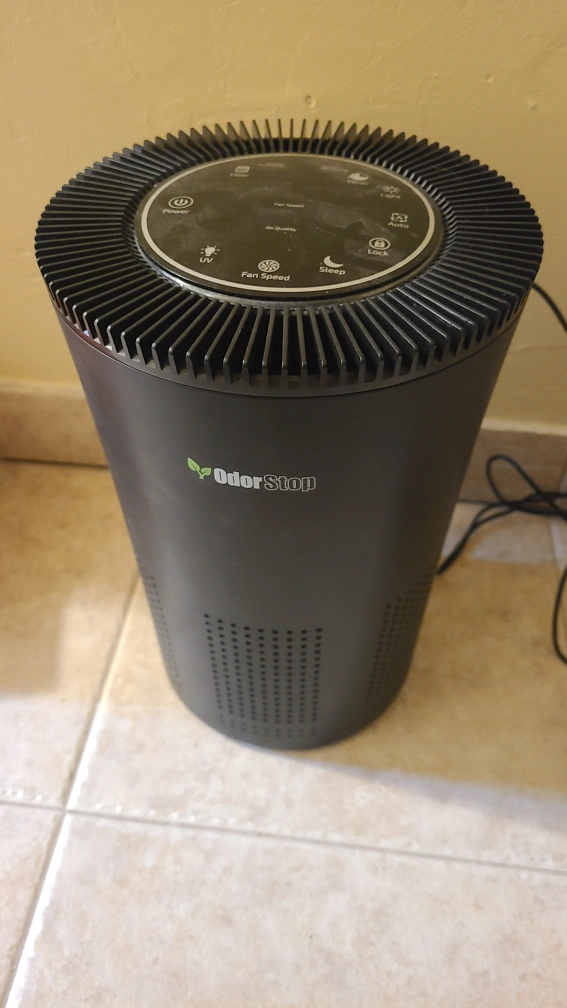 60Selling an OdorStop air purifier. It features multiple fan speeds, a sleep mode, and UV light