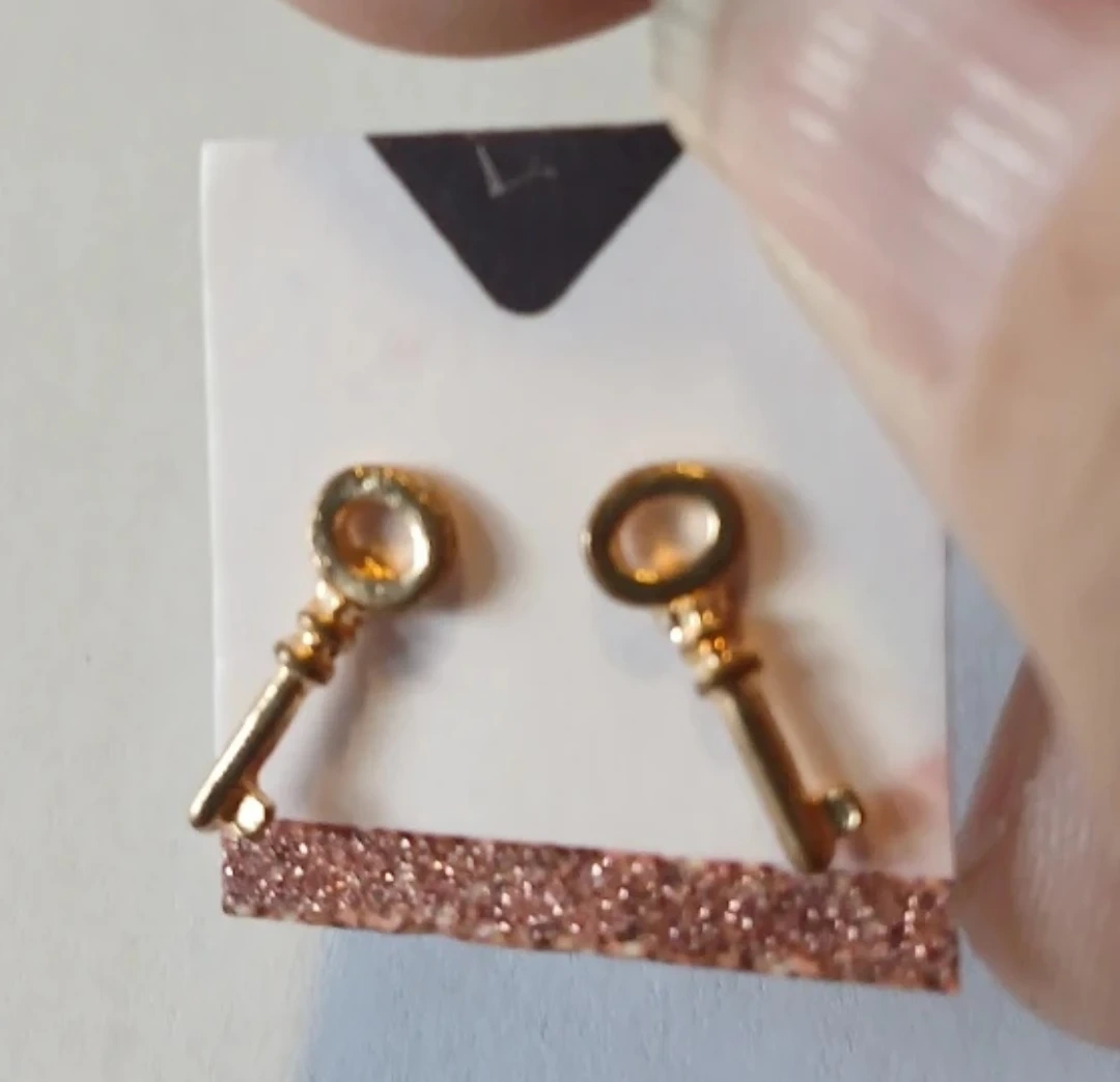 1.5" KEY DESIGN GOLDTONE PIERCED EARRINGS