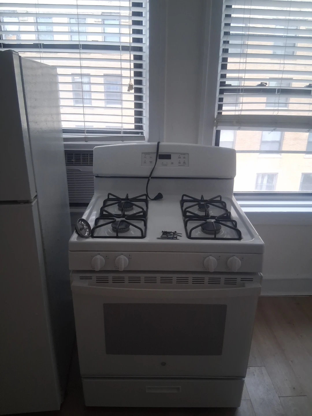 White GE Gas Range and Refrigerator Set
