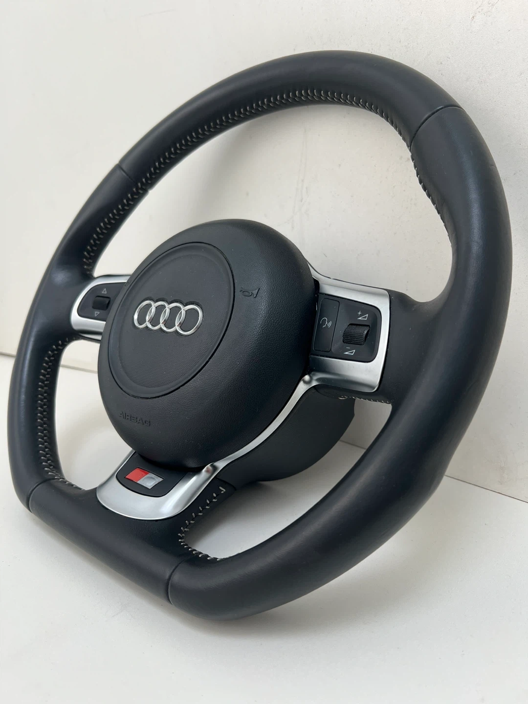 10Up for sale is a used but 100% working condition OEM Audi R8 Black Leather Steering Wheel Assembly 2006 - 2015 Mint condition, great for modifying your Audi A3, S3, A4, S4, A5, S5, A6, S6, A7, S7, A8, S8, TT, R8. Minor scratches from cleaning, wiping. It can be easily installed for Audi with the same steering control buttons A working Airbag is included.