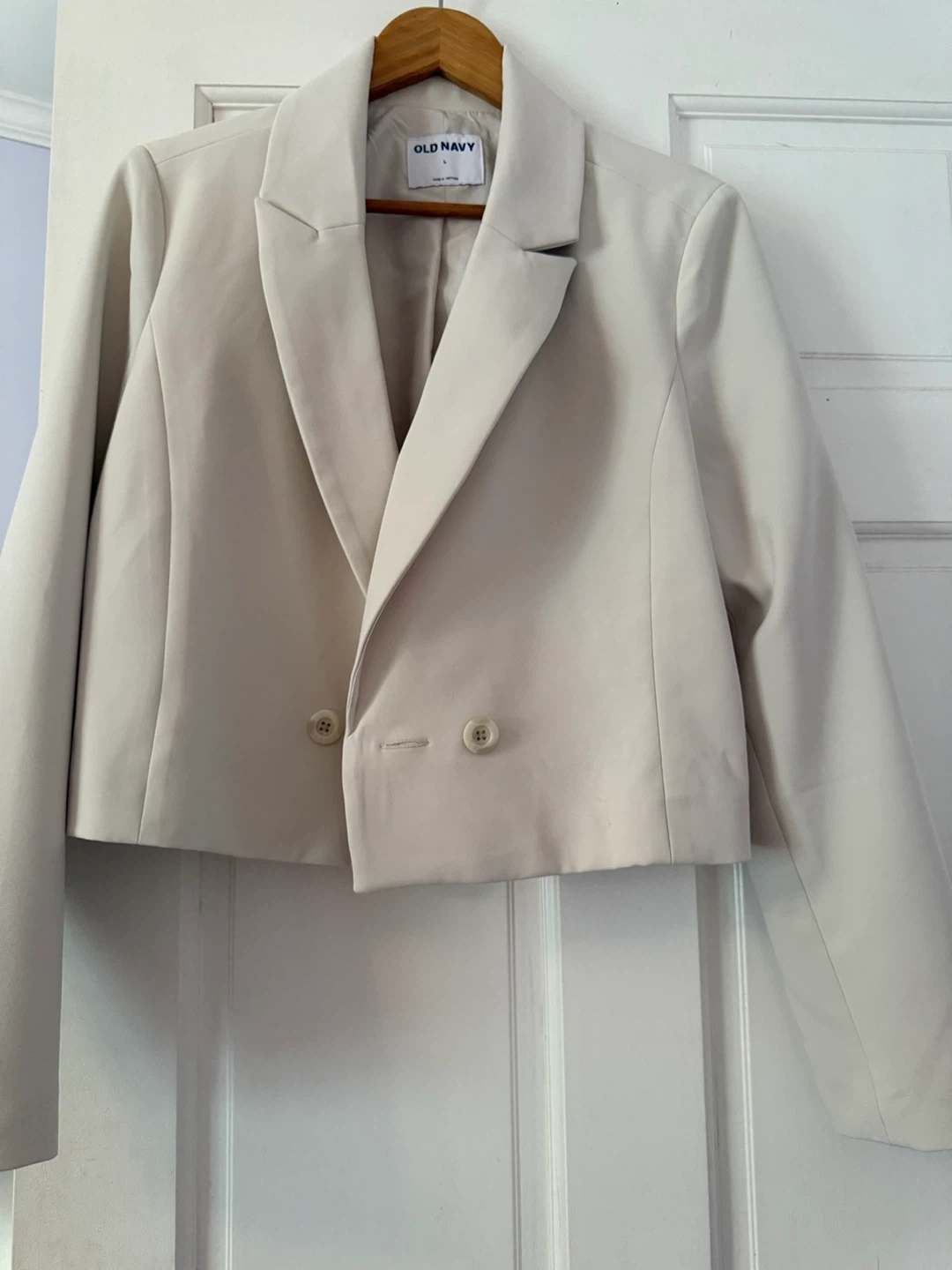Selling a stylish cropped blazer from Old Navy in a lovely neutral color! It's a size large and in great condition. Perfect for layering or dressing up any outfit!