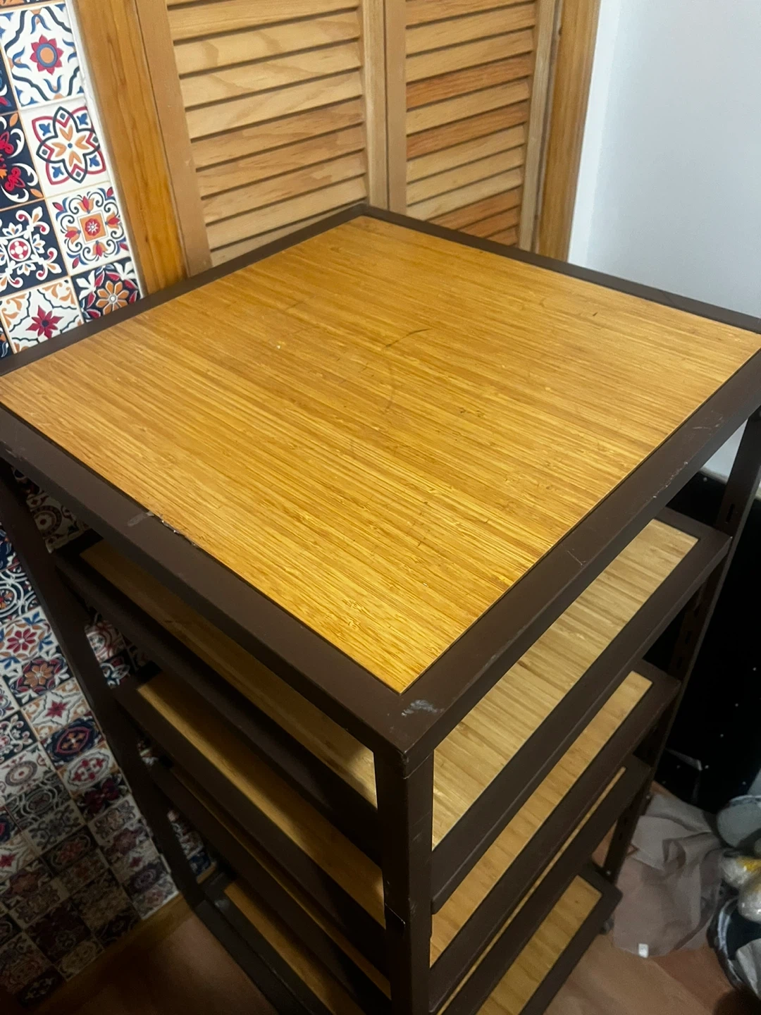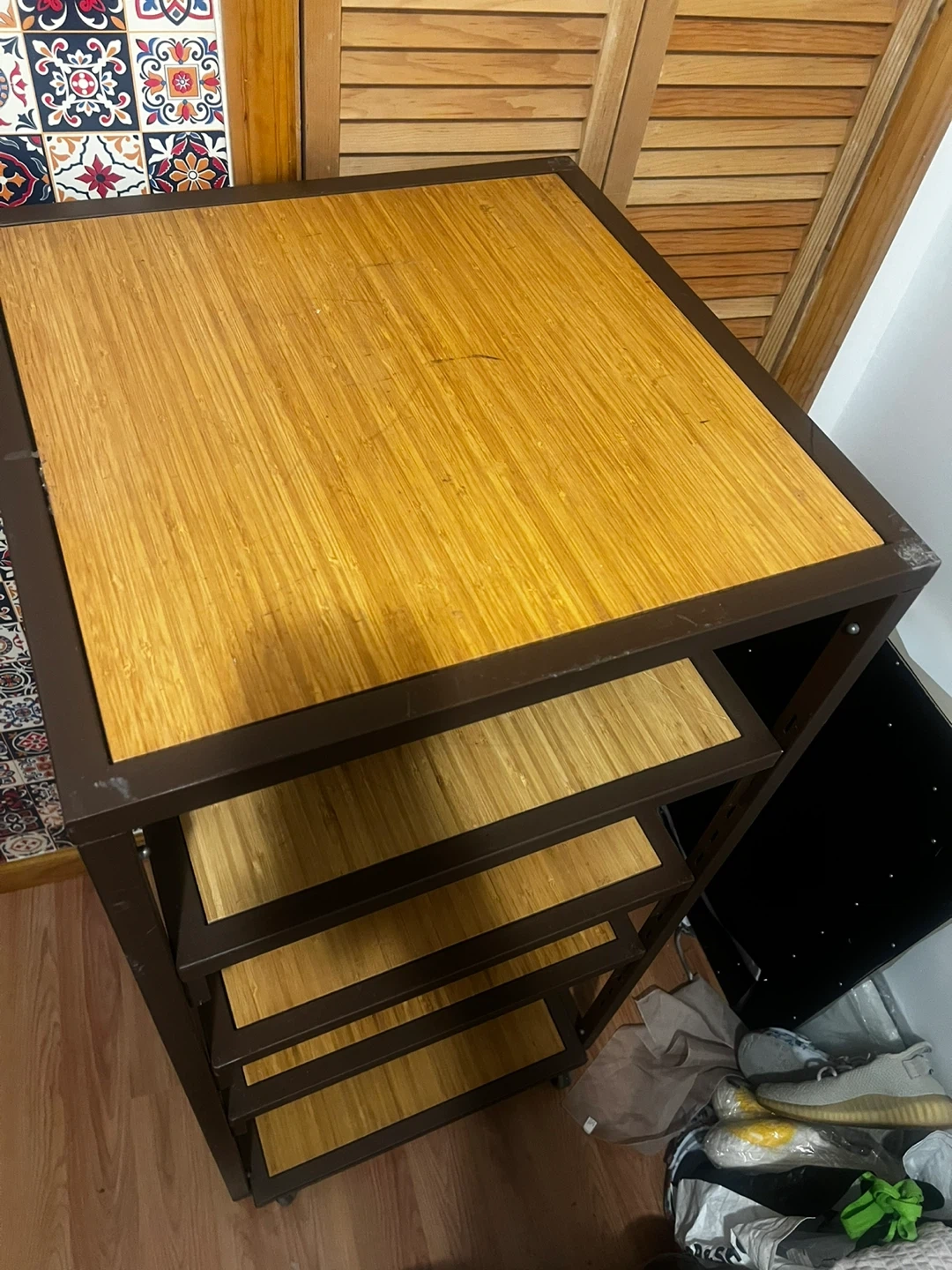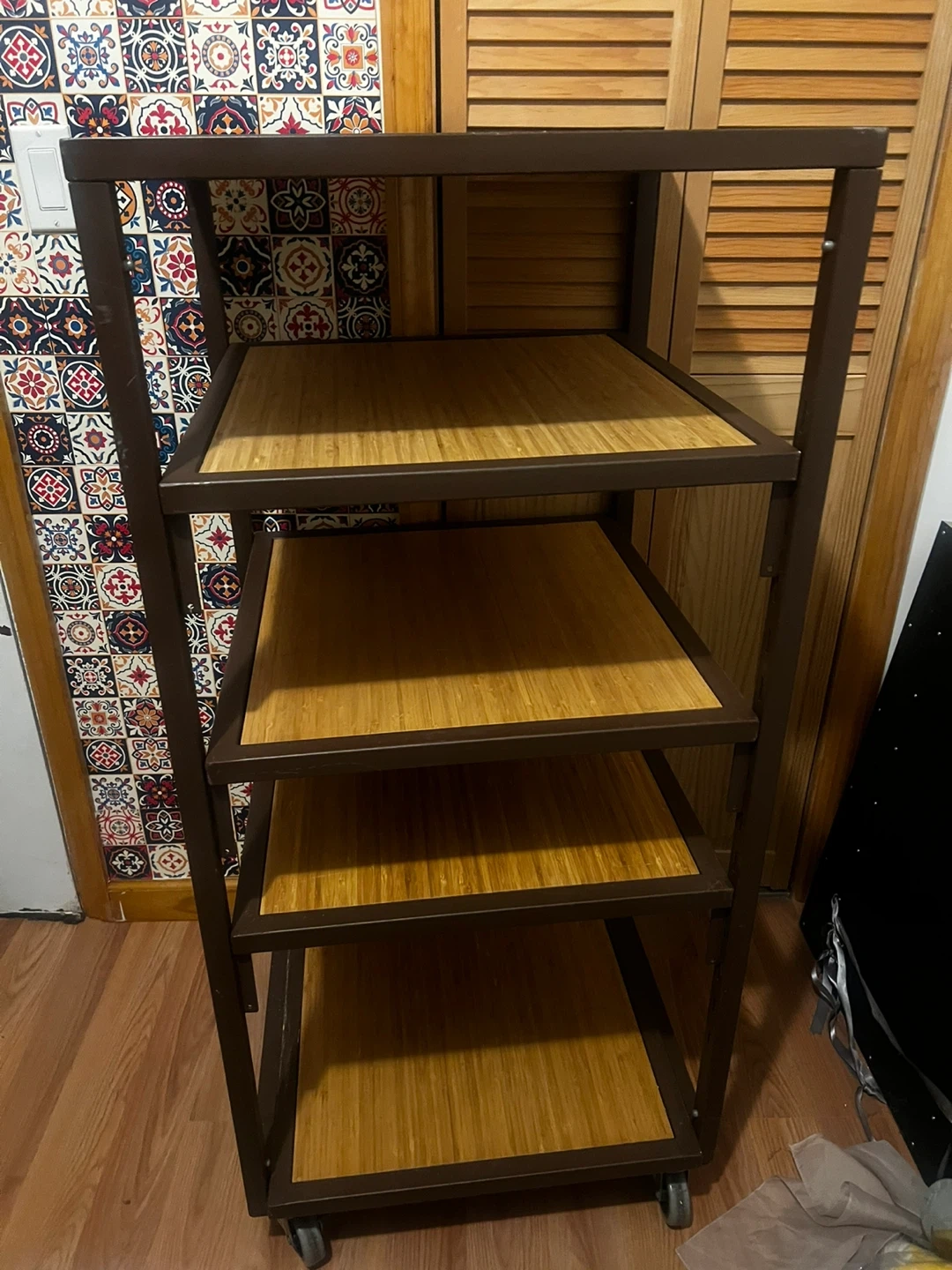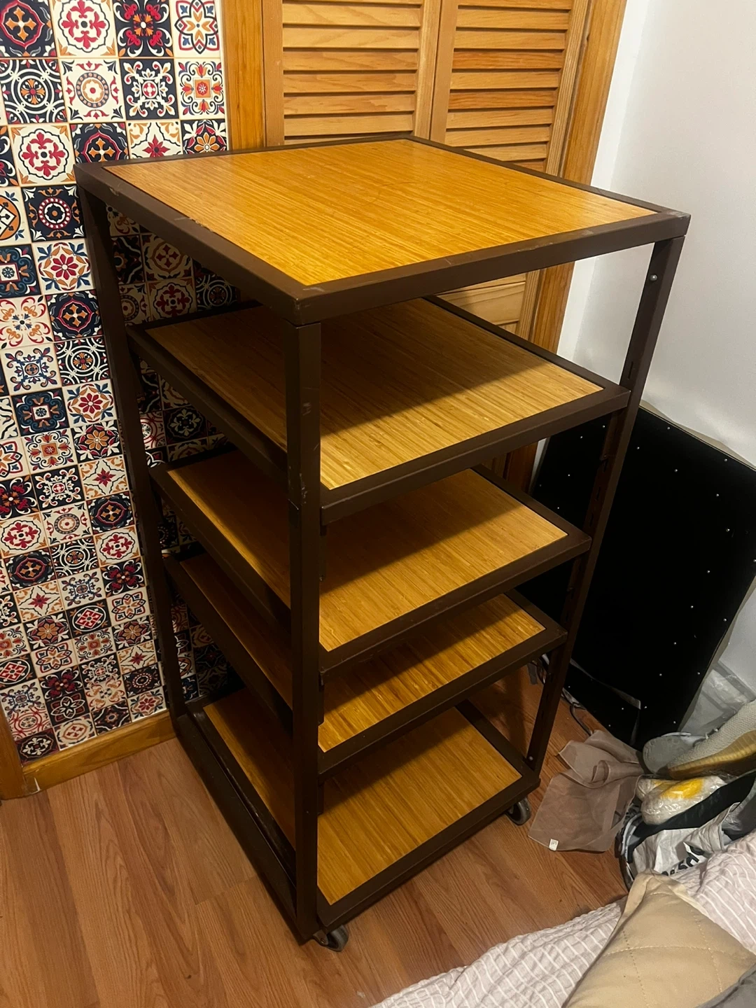 5-Tier Metal and Bamboo Shelf Unit with Wheels