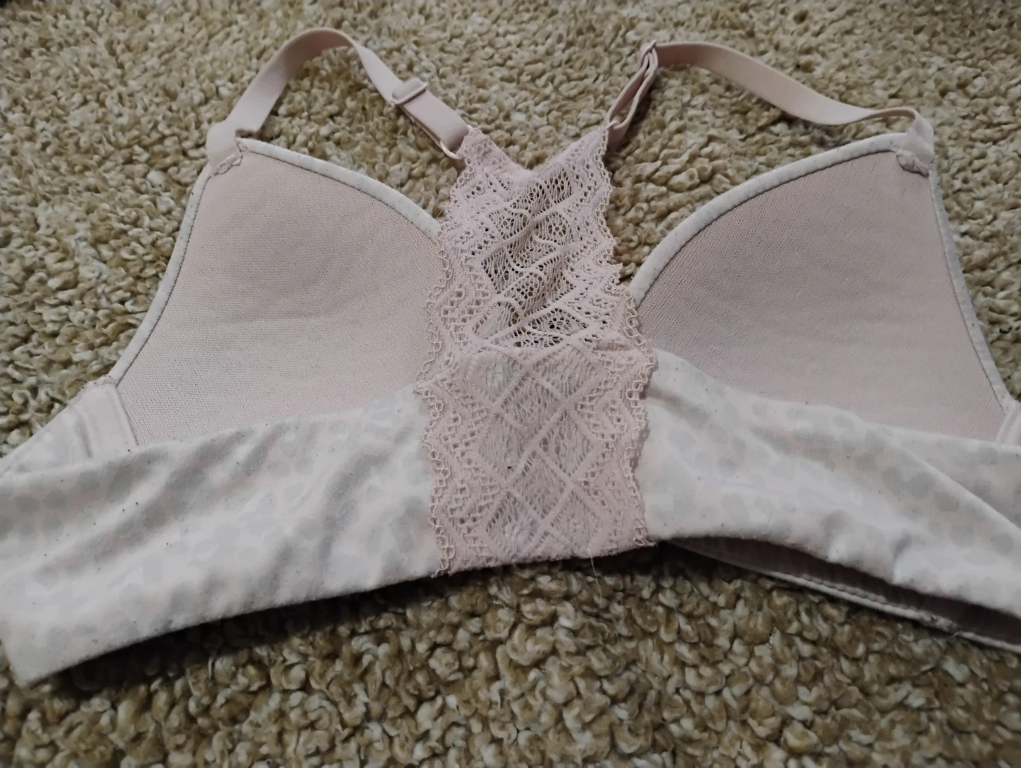 This bra is soft and would be super comfy if it fit me! It did for a while, so it has been worn a decent amount. The fabric is pilling on the front, but it is still fully functional and has a ton of life left!