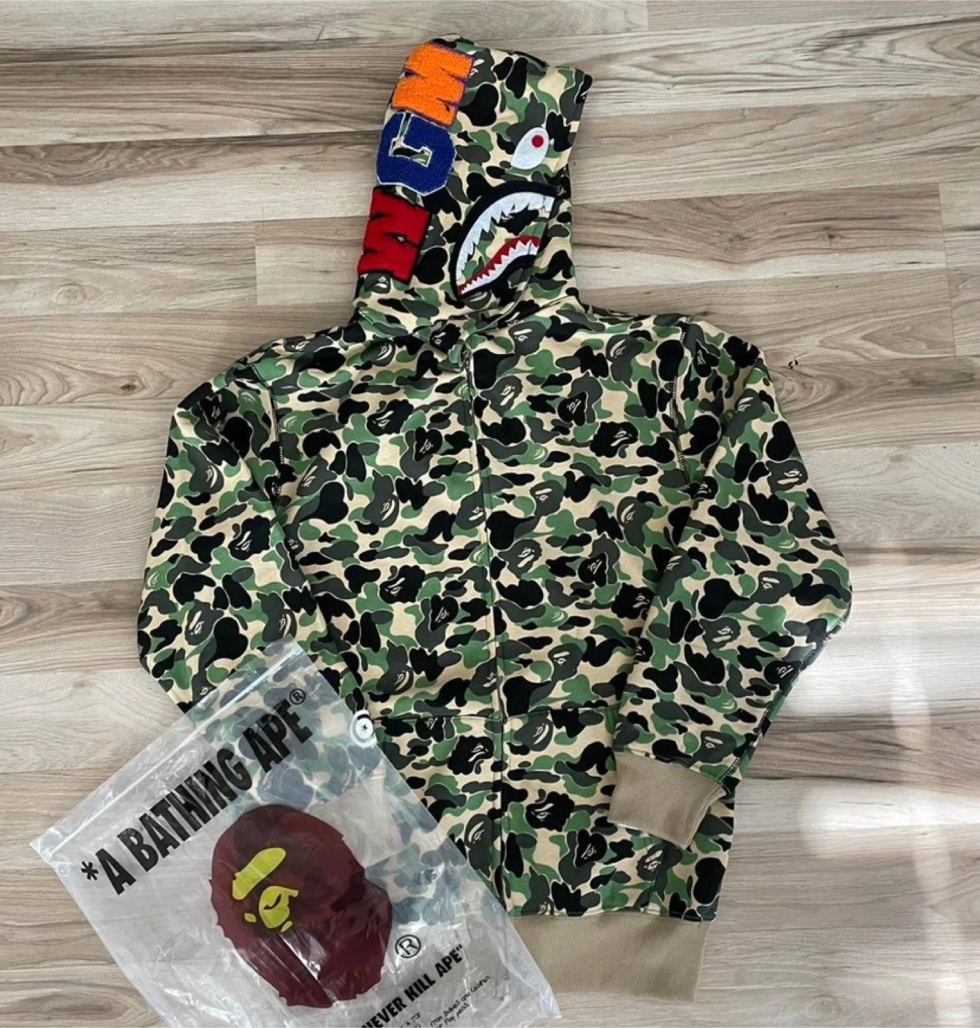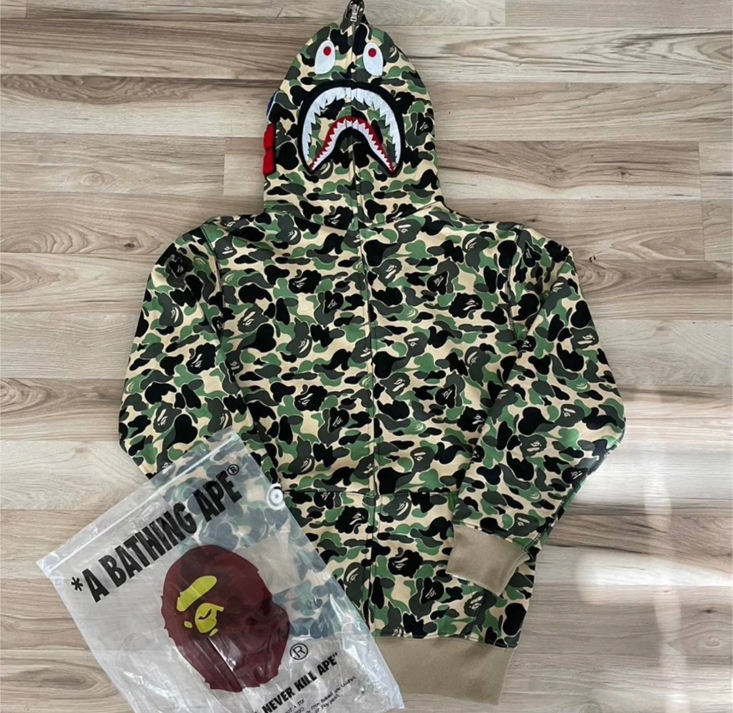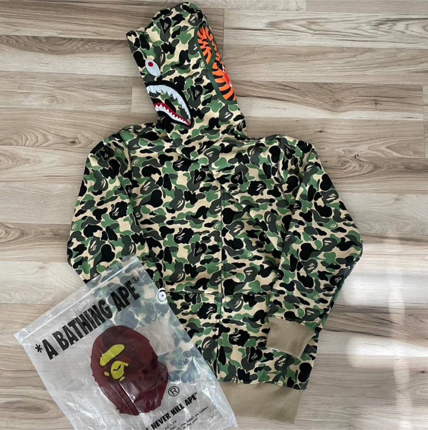 BAPE Green Camo Shark Full Zip Hoodie – All Sizes – NWT