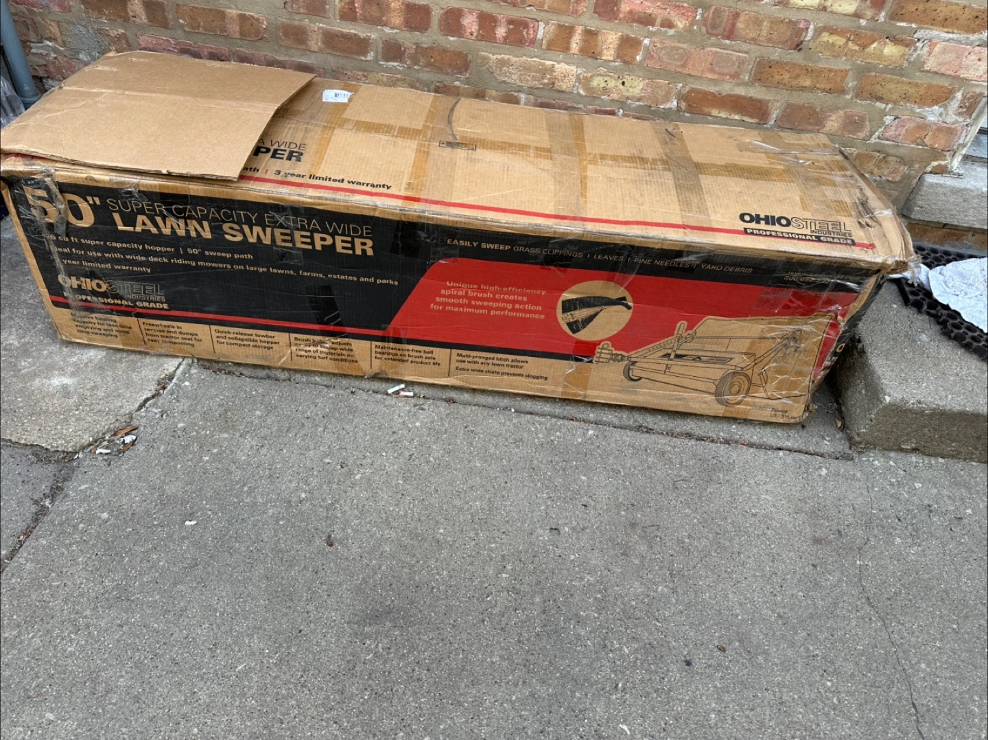 Selling a brand new Ohio Steel 50" Super Capacity Extra Wide Lawn Sweeper, still in its original box! This professional-grade sweeper has a 50" sweep path and a 26 cu ft super capacity hopper. It's ideal for use with wide deck riding mowers on large lawns, estates, and parks. Get your yard debris cleaned up quickly and efficiently!