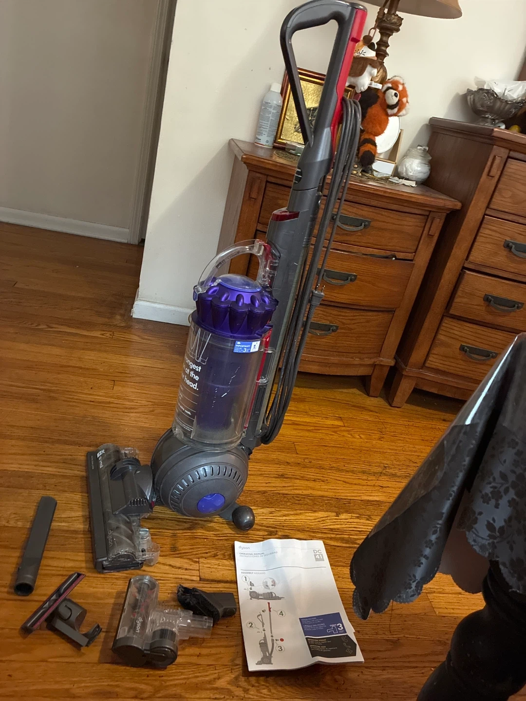 This Dyson DC Animal upright vacuum cleaner offers strong suction at the cleaner head. It captures allergens and expels cleaner air. It comes with multiple attachments for versatile cleaning. This vacuum is great for homes with pets!