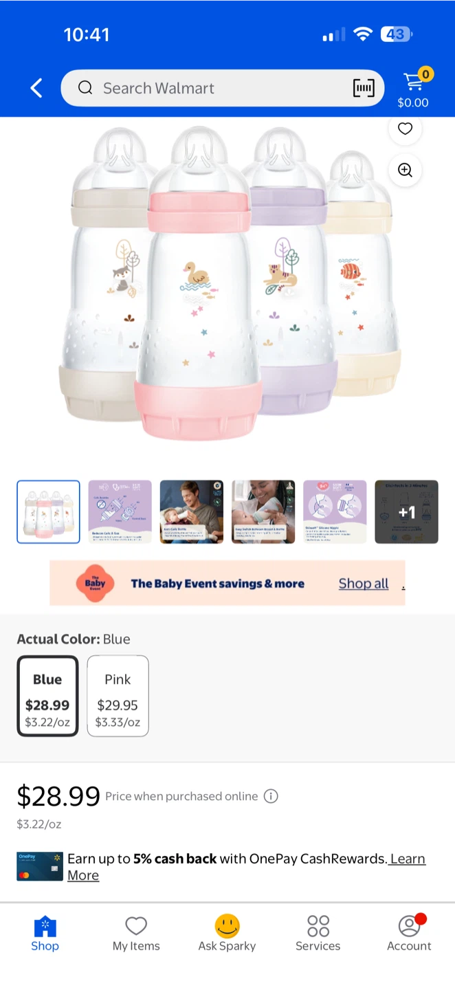 This is a pack of 6 MAM Easy Start Anti-Colic baby bottles. Each bottle is 260ml/9oz and designed for babies 2+ months. They come with anti-colic features to help reduce air intake.