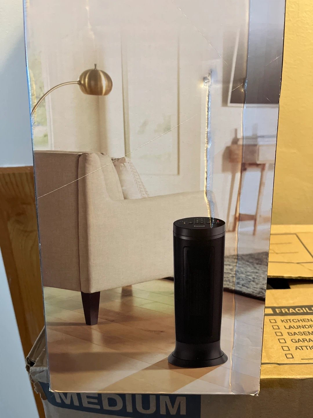 This Honeywell Slim Tower heater features ceramic technology. It offers two heat settings and programmable timer options. Safety features include 360° tip-over protection and 2x overheat protection. It oscillates and has a powerful 1500 Watts output.