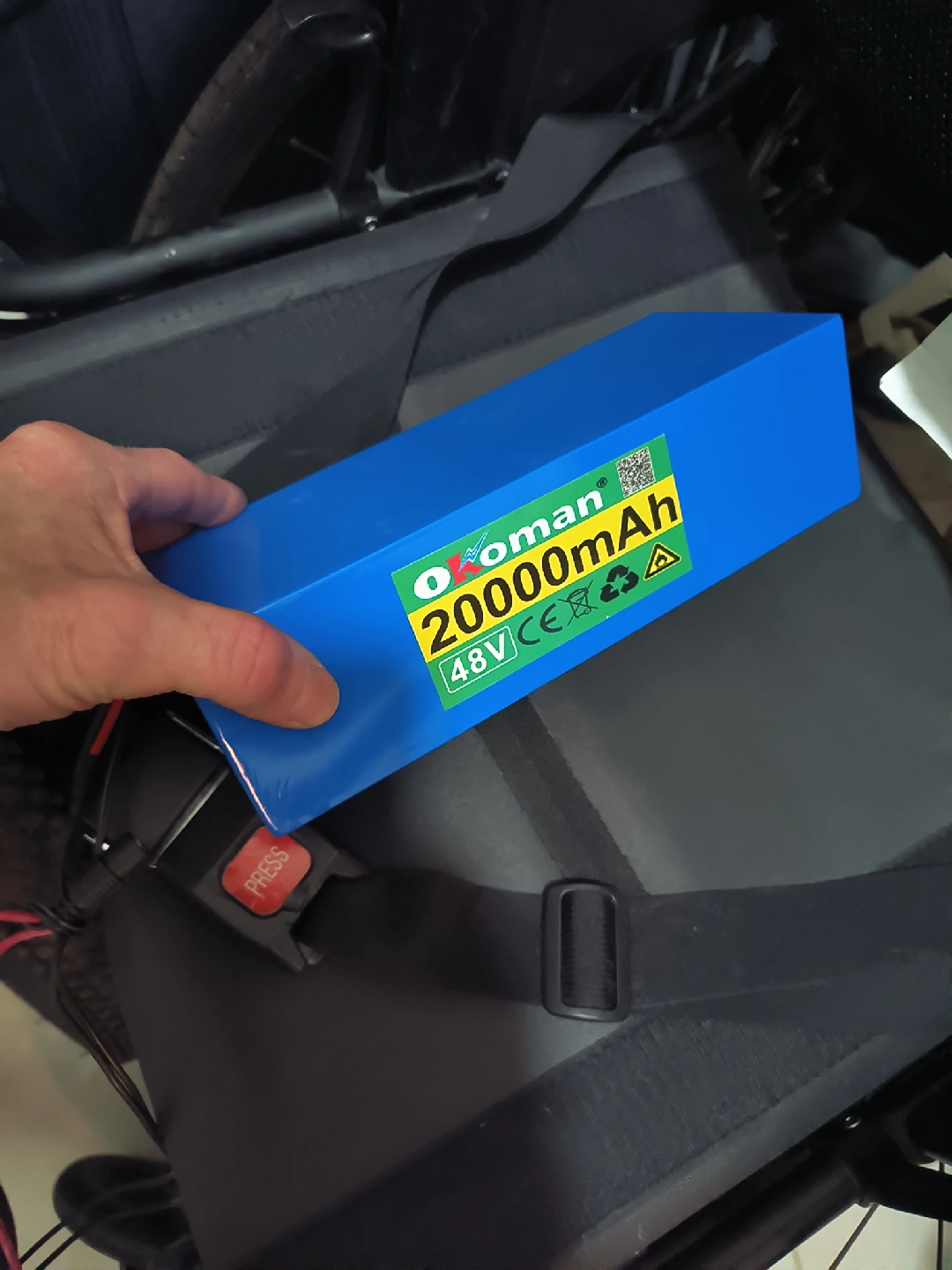 Selling a blue Okoman battery. It's a 48V battery with 20000mAh capacity. Only used for a few mins so it's basically brand new! Great for various apns requiring a reliable power source