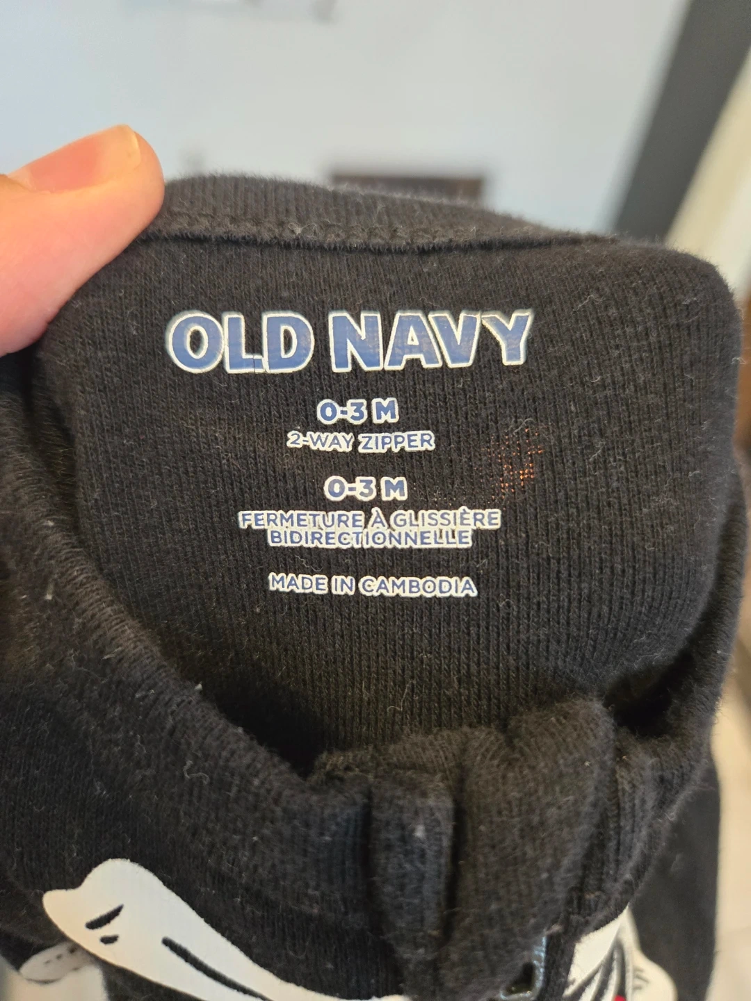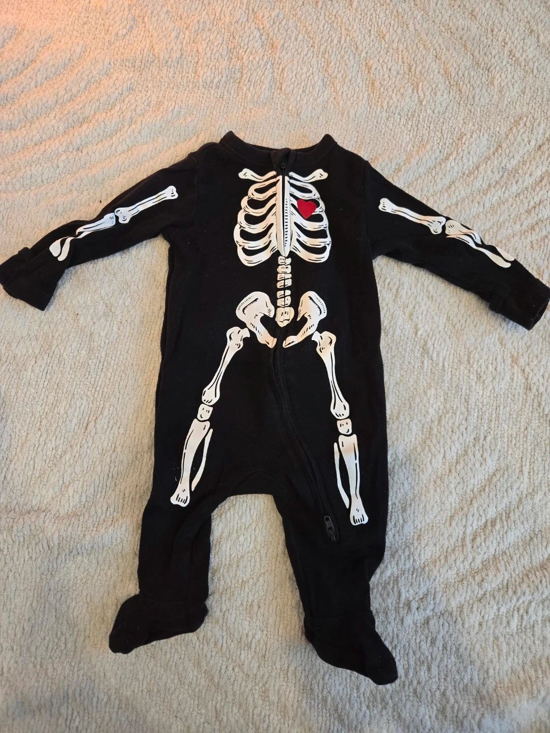 Black skeleton print footie pajamas from Old Navy with hand guards. Gently used. 0-3 months with a 2-way zipper. Made for the cutest, baby's first Halloween pictures👻