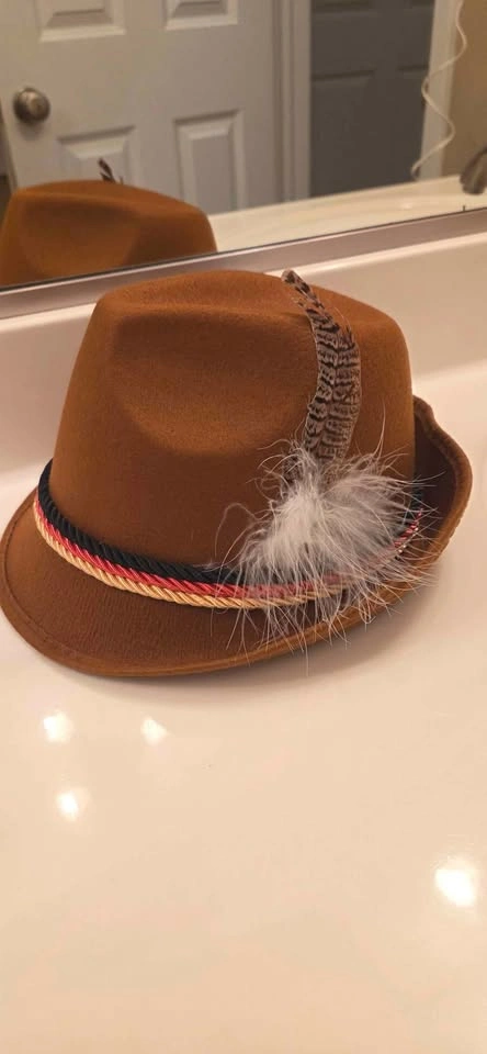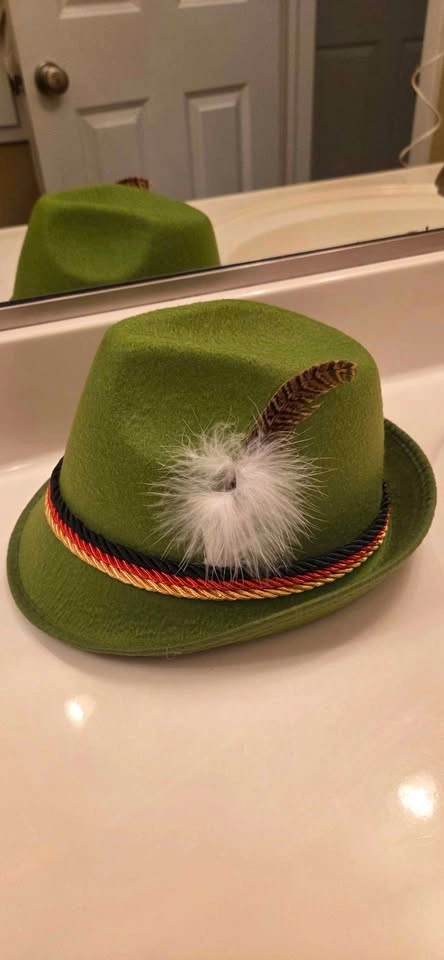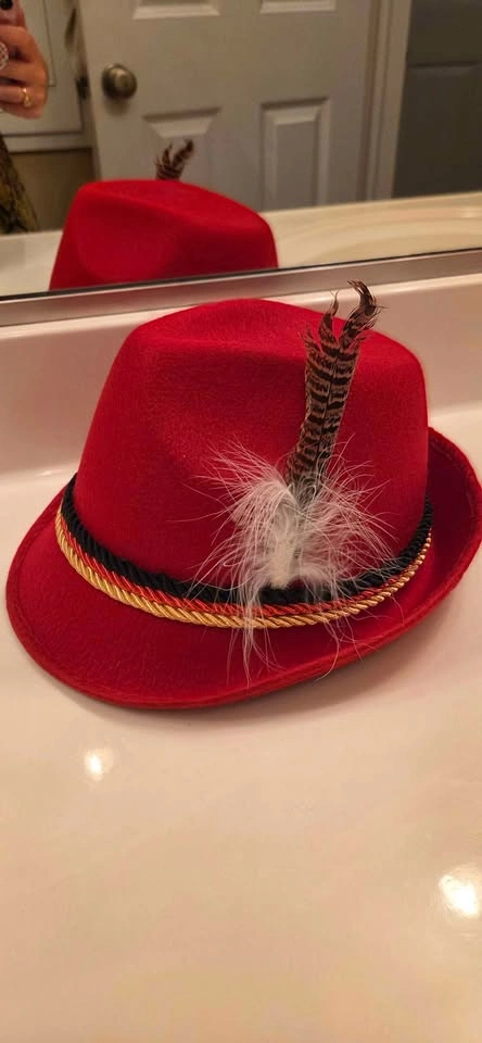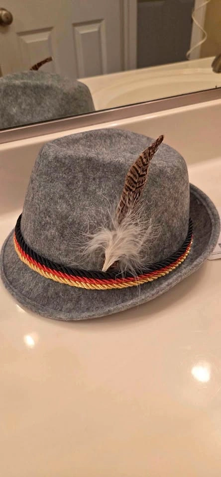 Traditional German Bavarian Hats. Multiple quantities. Four different colors grey, red, brown and green. $15 each.