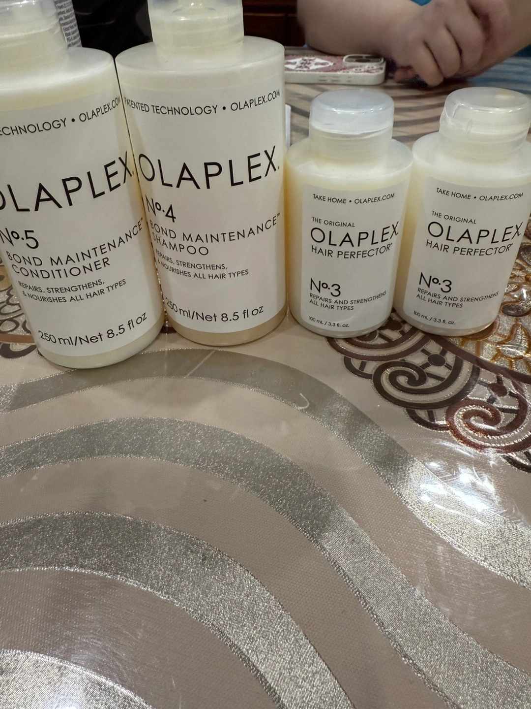 15Olaplex hair care set. Includes No. 4 Bond Maintenance Shampoo and No. 5 Bond Maintenance Conditioner, large and travel sizes. Repairs, strengthens, nourishes all hair types.