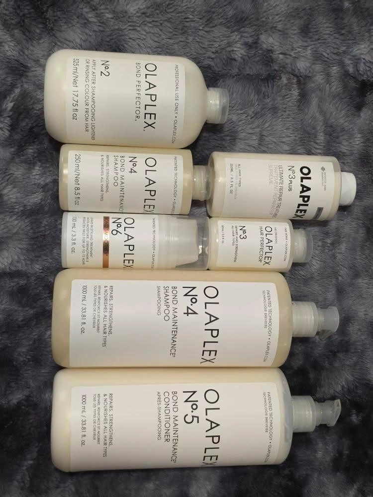 Selling a set of Olaplex hair repair products. Includes: - No. 2 Bond Perfector (525ml/17.75 fl oz) $40 - No. 3 Hair Perfector (250ml/8.5 fl oz) $20 - No. 3 Plus Ultimate Repair (250ml/8.5 fl oz) $25 - No. 4 Bond Maintenance Shampoo (1000ml/33.81 fl oz) $20 - No. 4 Bond Maintenance Shampoo (250ml/8.5 fl oz) $50 - No. 5 Bond Maintenance Conditioner (1000ml/33.81 fl oz) $50 - No. 6 Bond Smoother (100ml/3.3 fl oz) $20 These products repair, strengthen, and nourish all hair types!