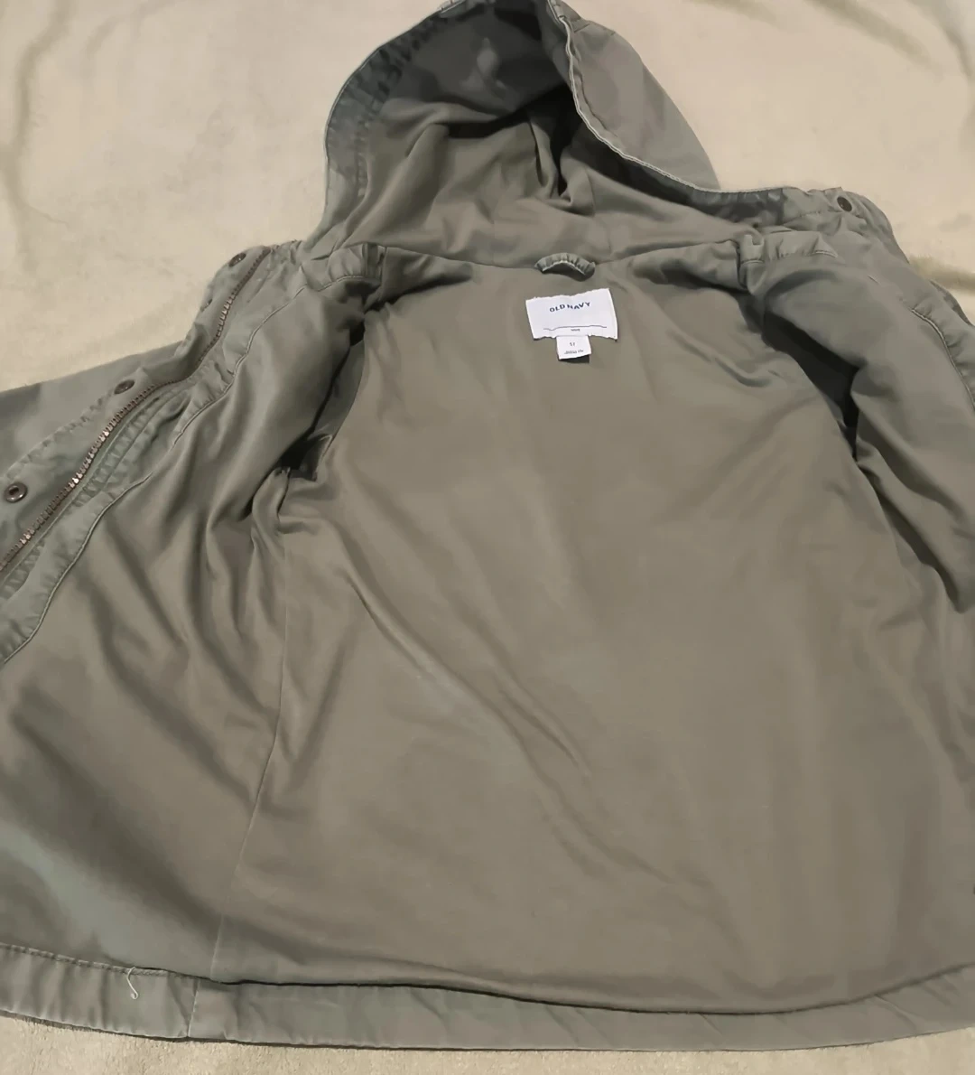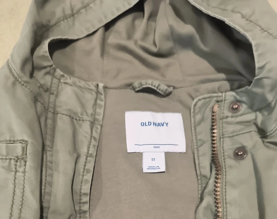 65Selling an Old Navy hooded jacket in size 5T. It's a stylish olive green color and in great condition! Perfect for layering