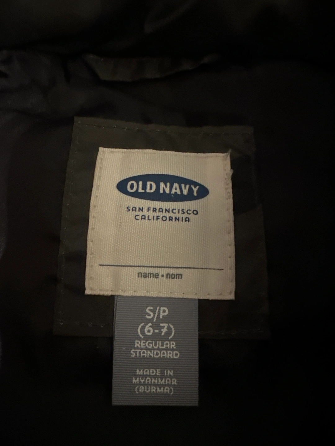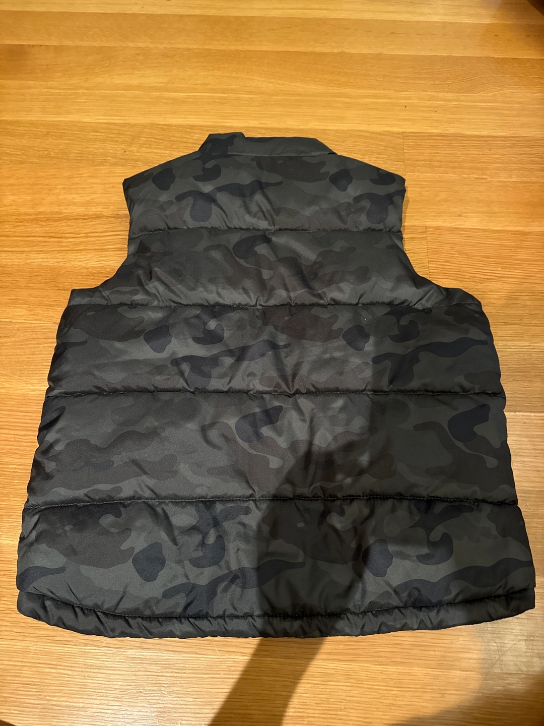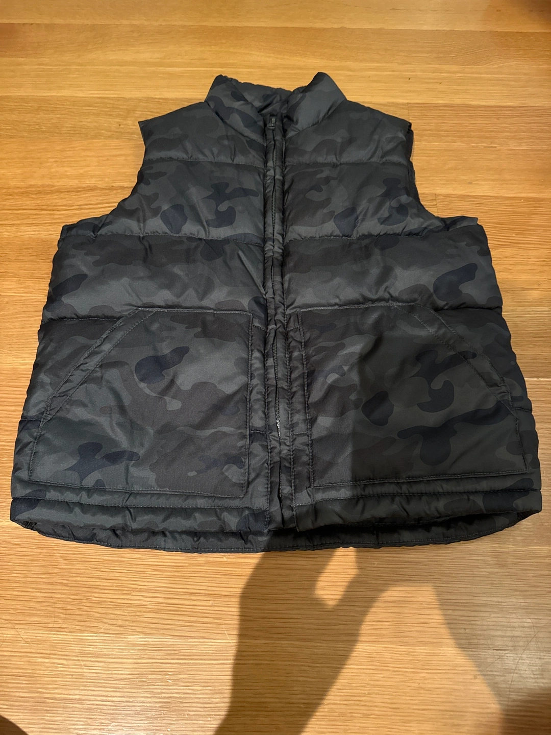118Boys puffer vest in camo pattern. Has two pockets in front. Zipper closure. Excellent like new condition. From old navy.