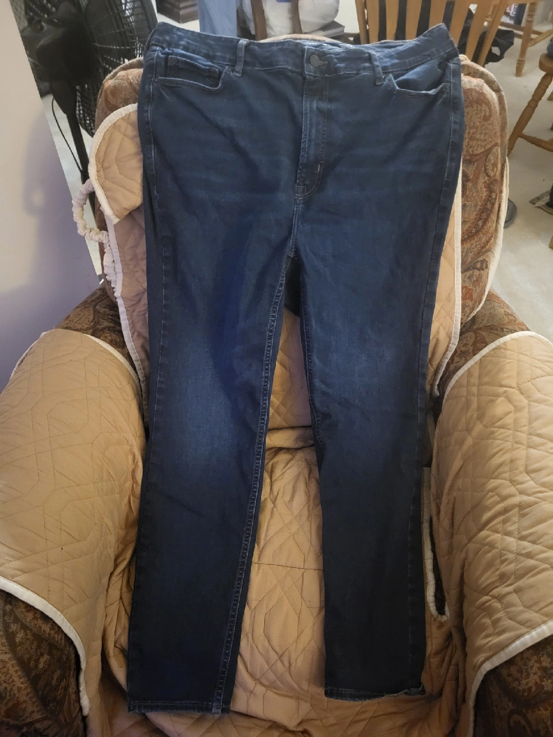 66Very good condition, worn maybe once or twice. Size 20-24. Doesn't fit me as a size 22 so runs small. Extra High-Rise Rockstar Super Skinny jeans.