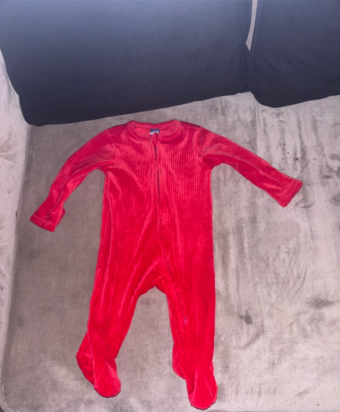 These are two footed pajamas for a baby. One is red and the other is light blue with Christmas trees. They are from Old Navy and are in good condition! Velvet Material. Very soft . Size 6-9 months $10 for both