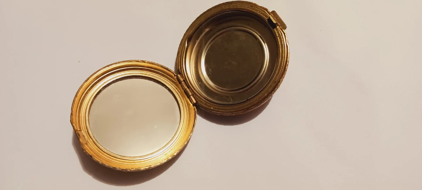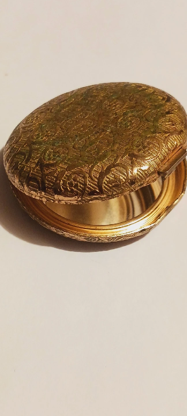 1000+Selling a vintage gold-tone compact mirror with a lovely patterned design. It opens to reveal a mirror inside. A beautiful piece for collectors or anyone who appreciates vintage accessories. Excellent condition. ALL MY PRICES ARE NEGOTIABLE !!