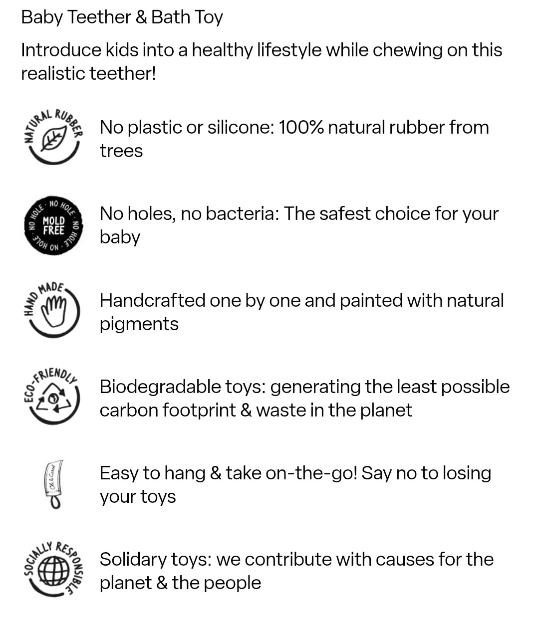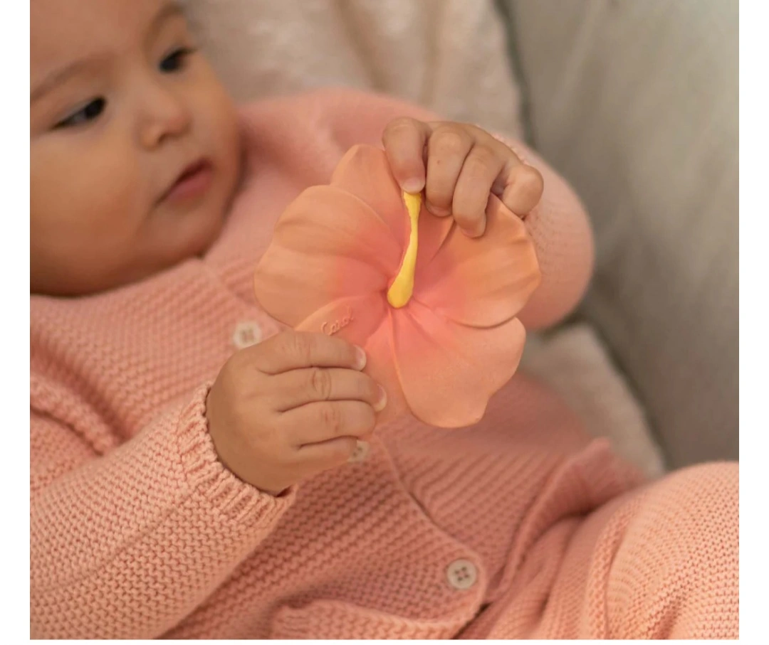 10Here's a gently used Oli & Carol Iris the Hibiscus Baby Teether! It's perfect for soothing those little gums. The teether is made from natural rubber and painted with food grade dyes, making it safe for your baby to chew on. It's also easy to clean and soft to the touch!