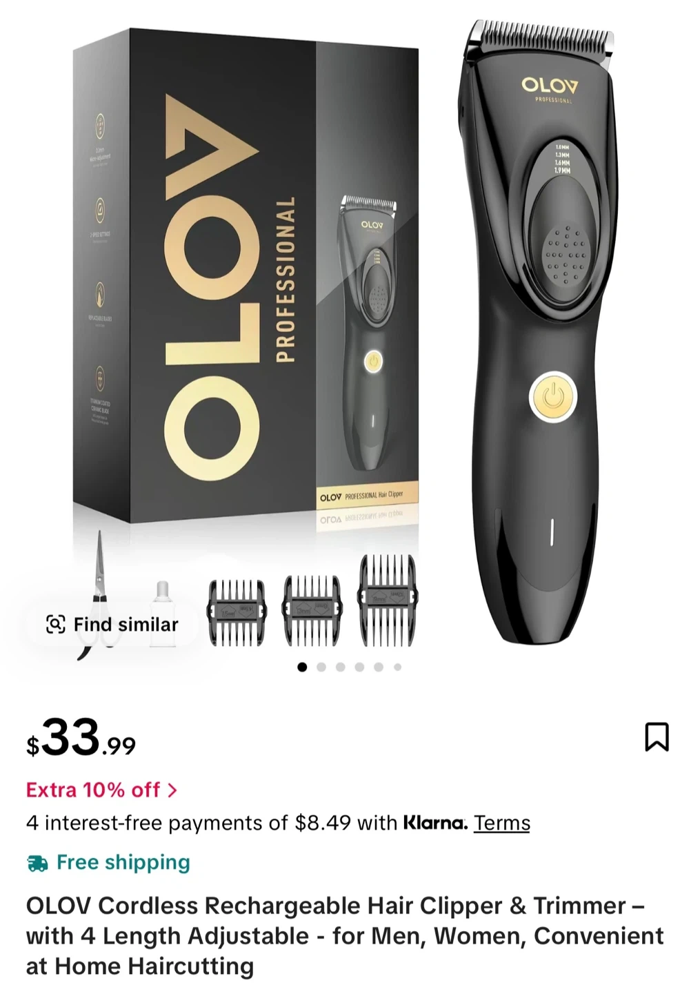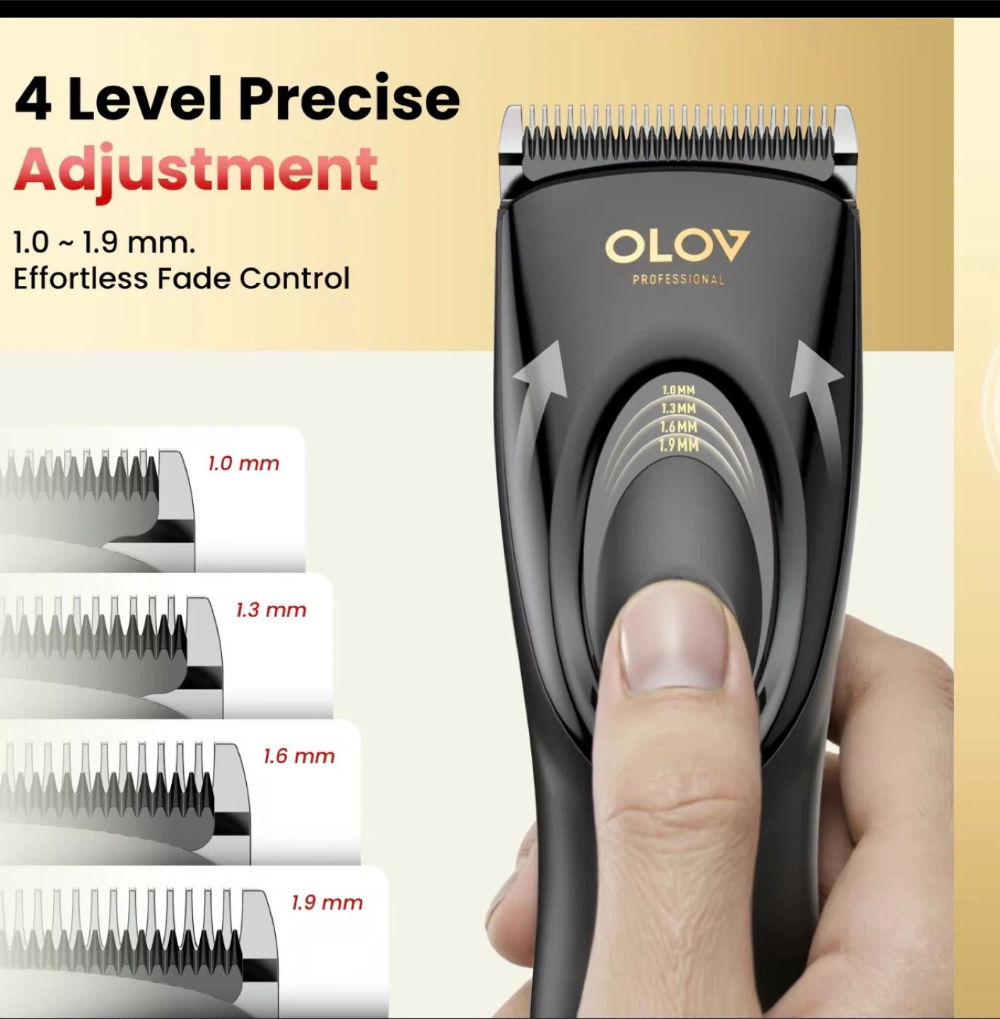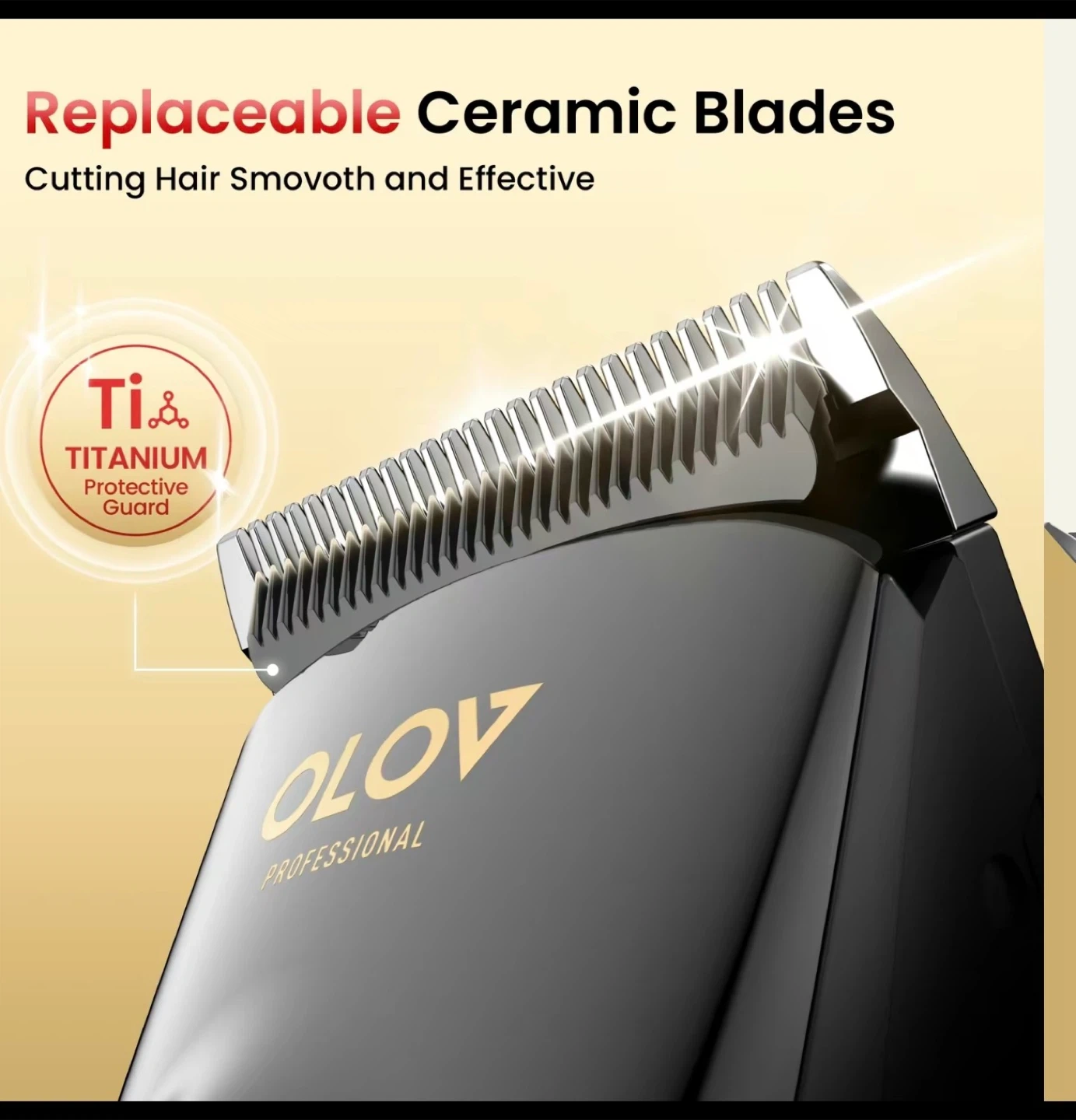 Selling a OLOV Professional Hair Clipper & Trimmer. It features: - Replaceable ceramic blades for smooth and effective cutting - Titanium protective guard - 4 level precise adjustment (1.0 ~ 1.9 mm) for effortless fade control - Fast charging & long-lasting battery, offering corded or battery-powered options - Quick & easy cleaning with a removable rinseable blade