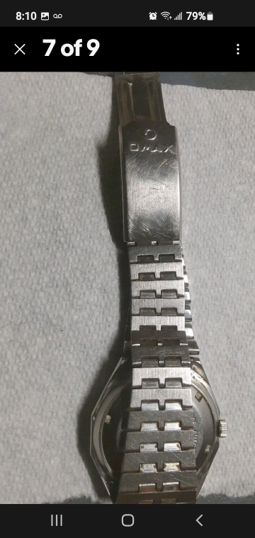 Selling a vintage Omax automatic watch with a striking red dial. It features a day-date display and "Crystal 25 Jewels" marking. The watch shows signs of wear on the case and band, but it still works.