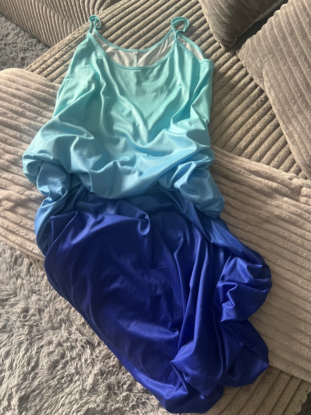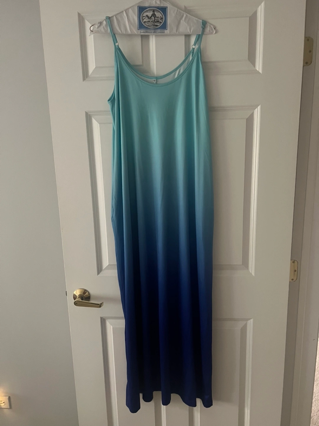 Flowy ombre maxi dress in shades of blue! It's super comfortable and perfect for warm weather. The dress is new and ready for a new home