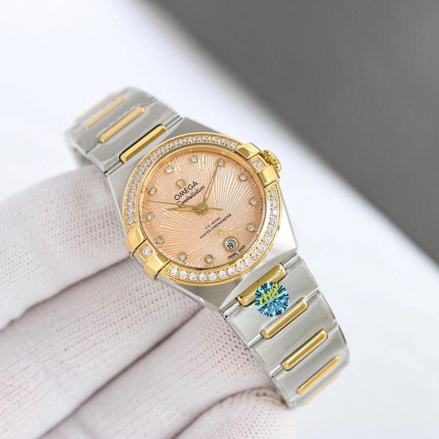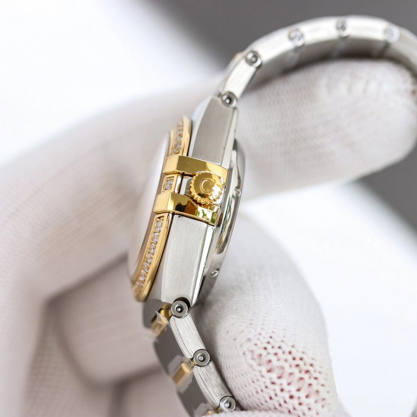 Selling a lovely Omega Constellation watch for ladies! This watch features a beautiful design with diamond accents and a two-tone stainless steel and gold bracelet. It's in great condition and ready to wear