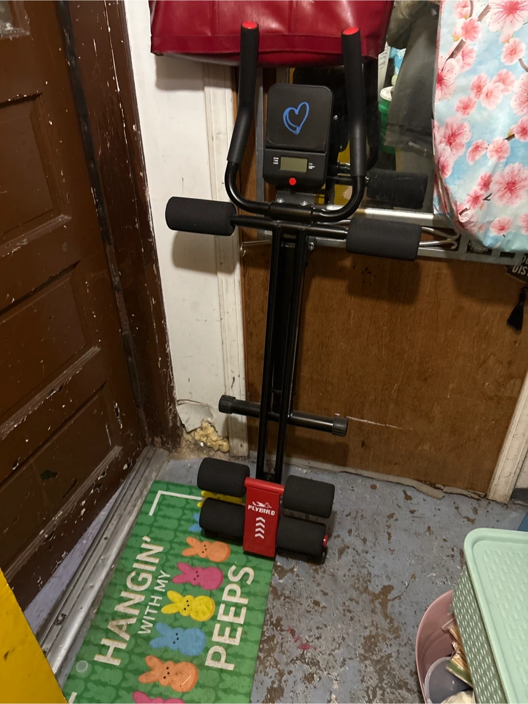 This FLYBIRD sit-up assistant device is designed to help with your ab workouts. It's made with a sturdy metal frame and padded grips for comfort. Easily adjustable to accommodate different users.