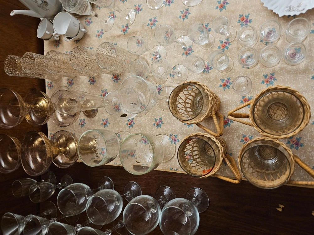 • Drinking glasses: crystal, tumblers, juice glasses