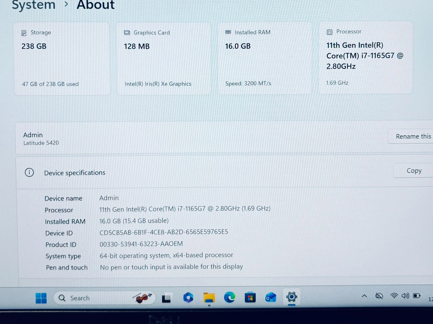 Hello, I am selling a Dell Latitude 5420, 11th Gen, Windows 11 Pro laptop. I factory reset it, so it's like new, and all accounts and data are removed.