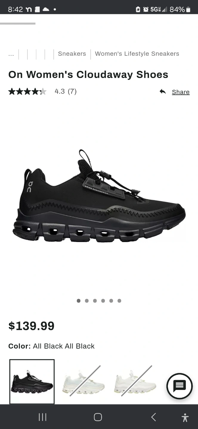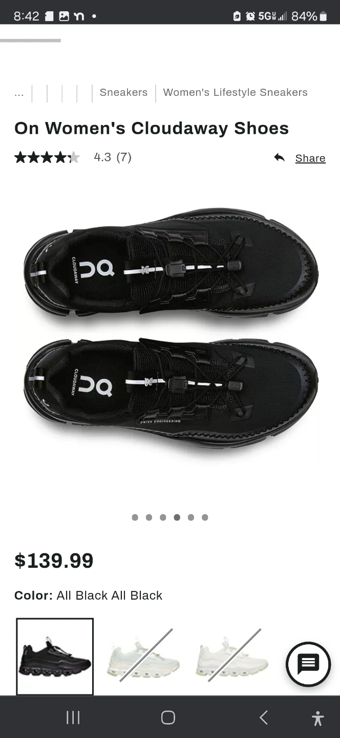 Women's On Cloudaway shoes. All black colorway. Lightweight design. Comfortable fit. Great for everyday wear. Size Reduced a 5