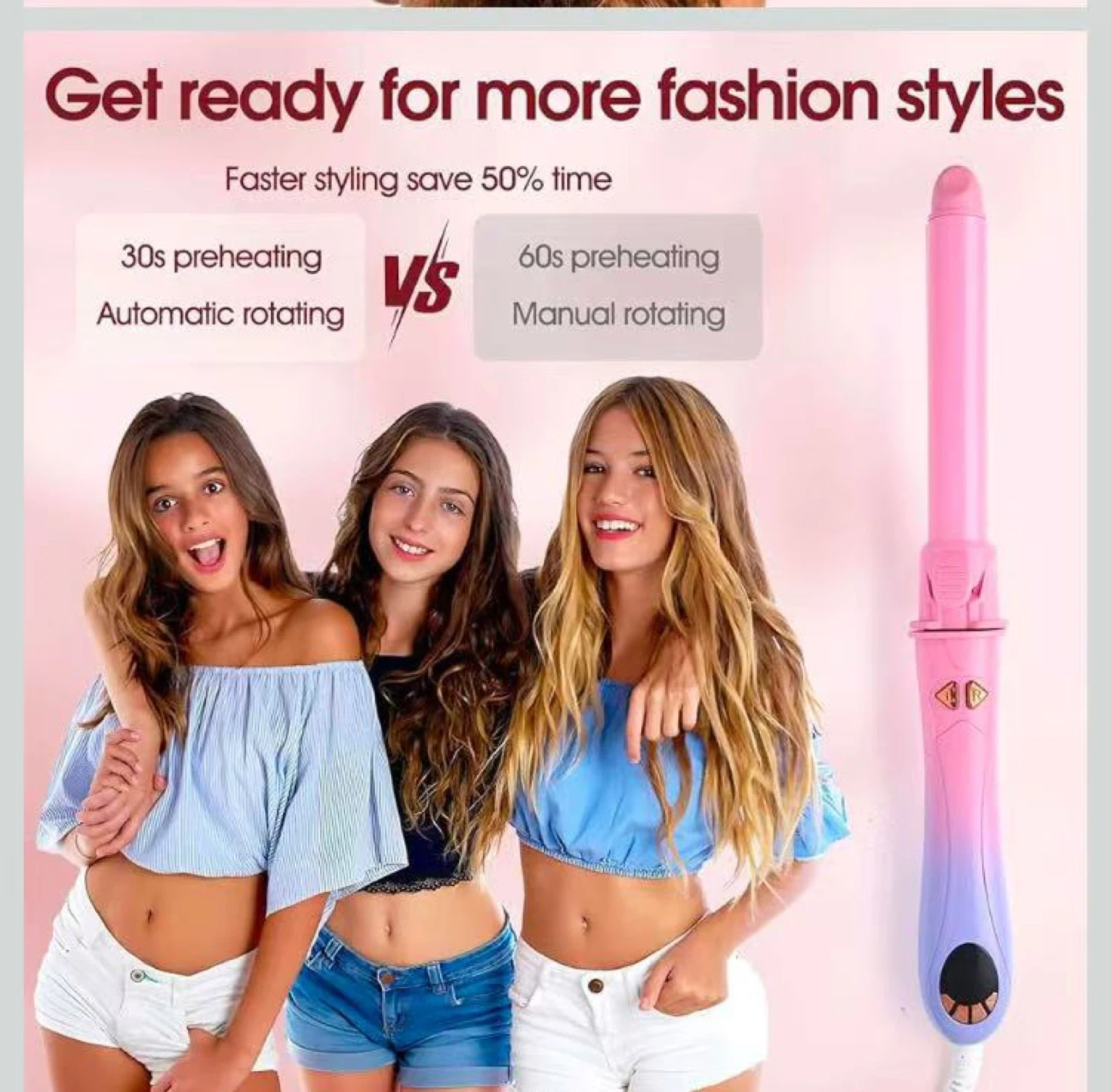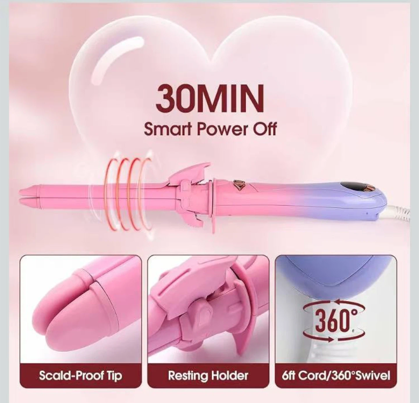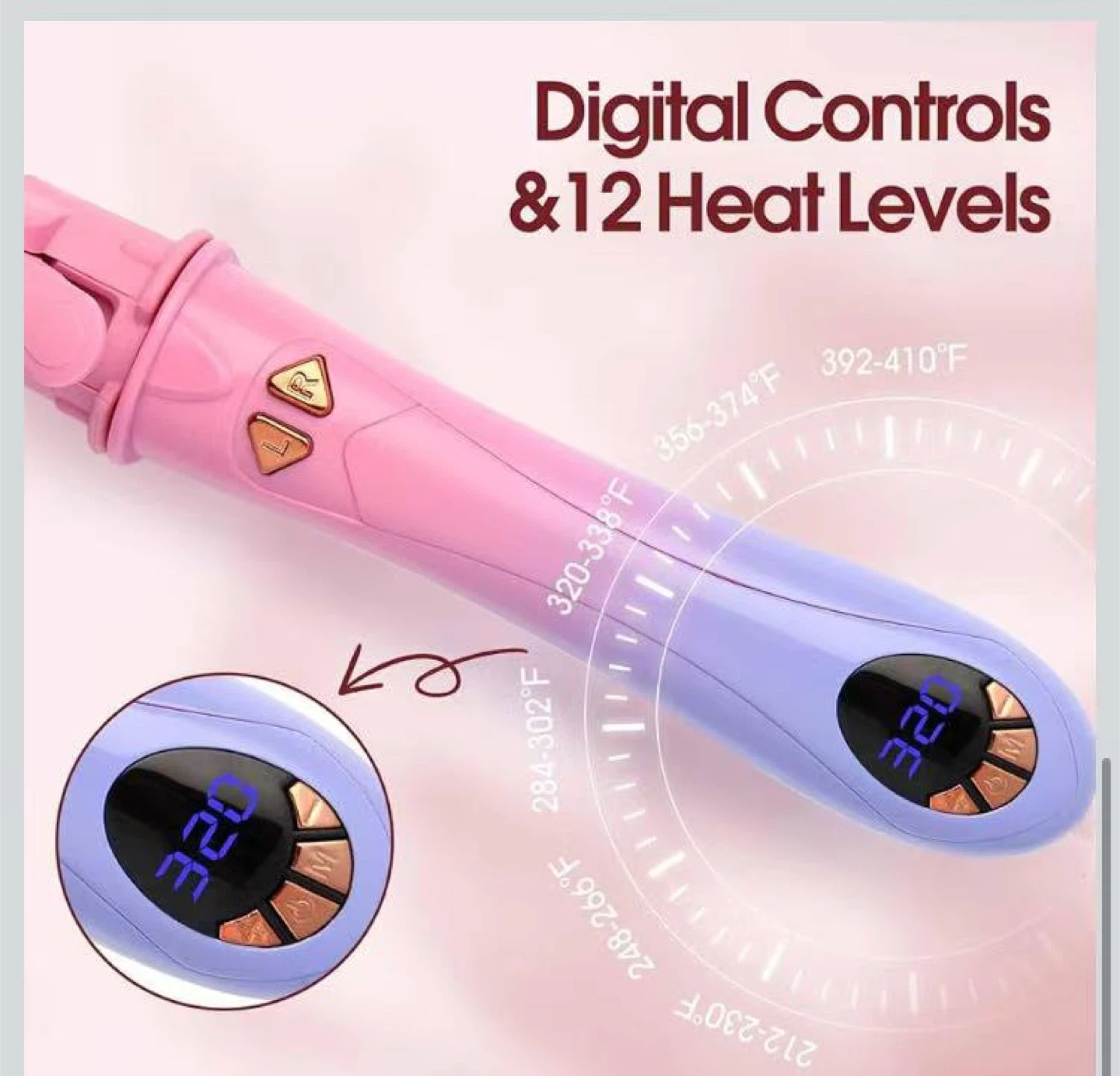 154Automatic Rotating 2 in 1 Curler & Straightener - Temperatures Adjustable, 30s Fast Pre-Heating, 30MIN Smart Power Off, Special Clamp Design to Prevent Hair from Catching