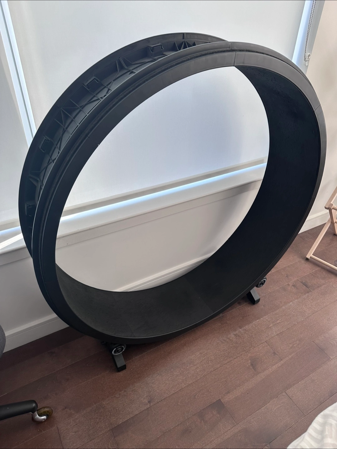 Selling a gently used One Fast Cat Exercise Wheel in black! This wheel is a great way for your cat to get exercise and stay active indoors. It's in good condition and ready for a new home. Your cat will love it!